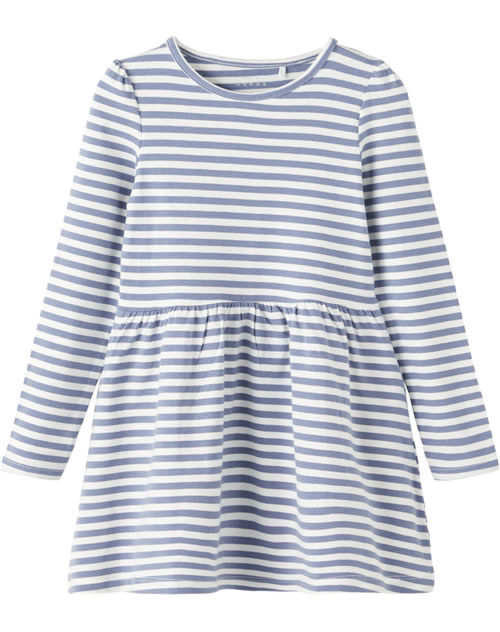 Gestreiftes Kleid aus leichtem Jersey-Stoff von NAME IT. Der lockere Schnitt und der weite Rock machen dieses Kleid scnell zu einem Lieblingsstück, das sich prima mit Leggings, Jeans oder Strumpfhose kombinieren lässt.