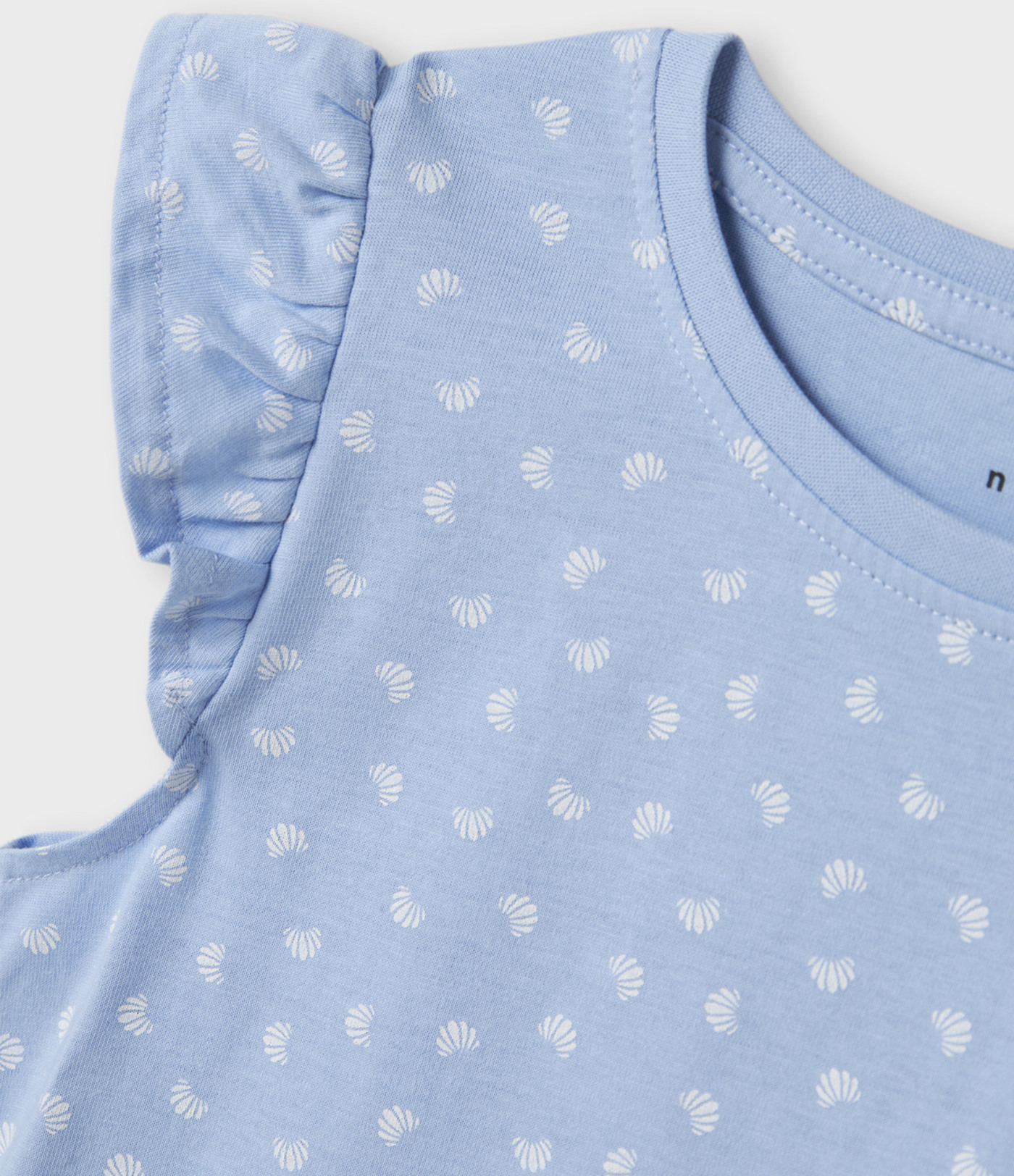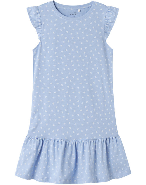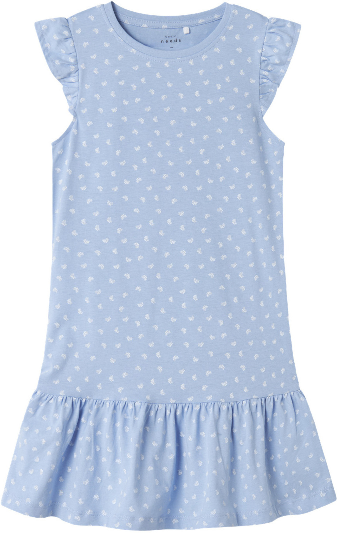 Hübsches Jersey-Kleid für Mädchen von NAME IT. Der lockere Schnitt des Kleides ist ideal für den Sommer und lässt sich schön mit einer Leggings kombinieren. Die kleinen Muscheln sowie die verspielten Flügelärmel sind hübsche Details. An warmen Sommertagen einfach hineinschlüpfen und los geht´s!
