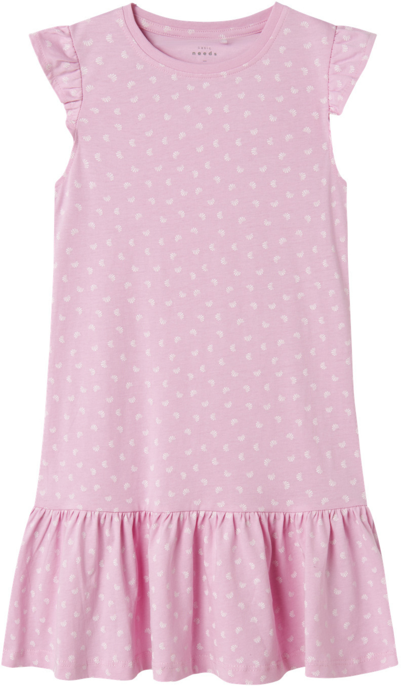 Hübsches Jersey-Kleid für Mädchen von NAME IT. Der lockere Schnitt des Kleides ist ideal für den Sommer und lässt sich schön mit einer Leggings kombinieren. Die kleinen Muscheln sowie die verspielten Flügelärmel sind hübsche Details. An warmen Sommertagen einfach hineinschlüpfen und los geht´s!