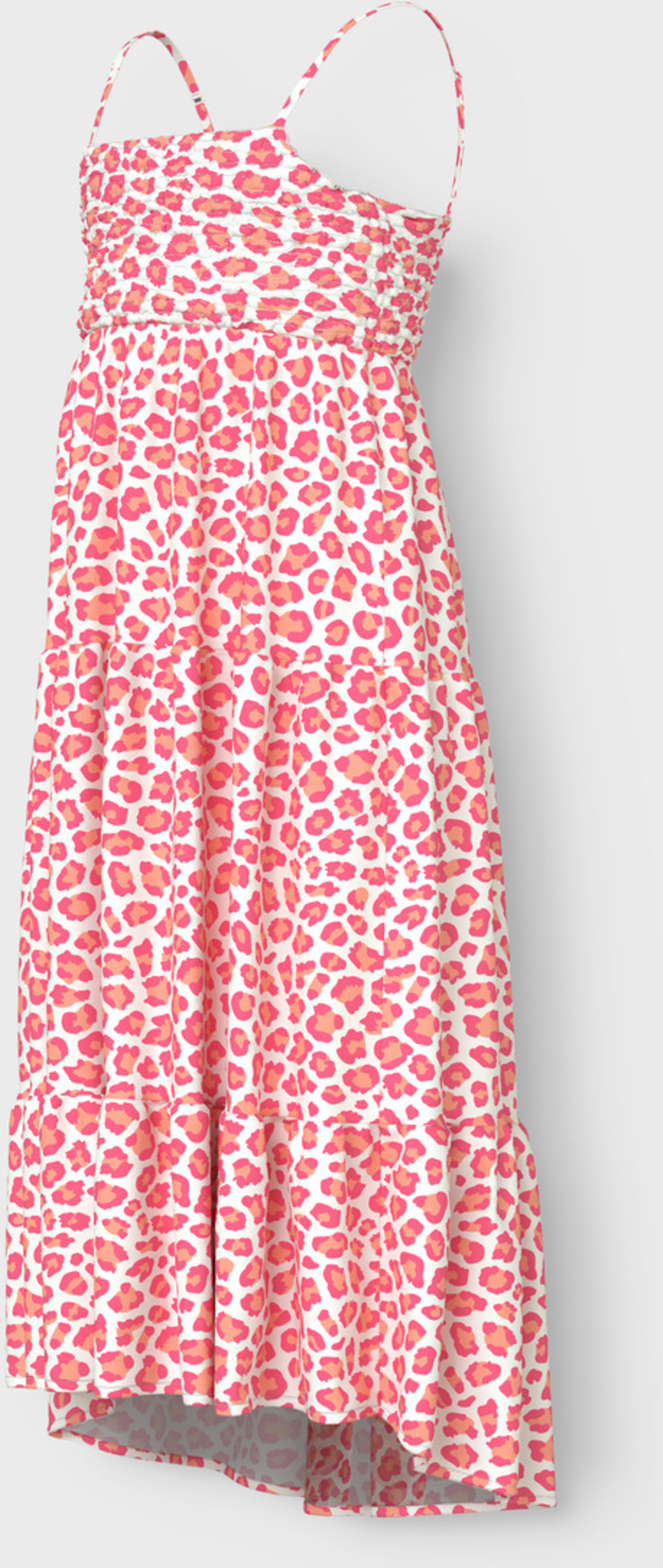 Leichtes Kleid mit Spaghettiträgern und mehreren Stufen von Name it. Das farbenfrohe Leo-Muster macht dieses Kleid schnell zu einem Lieblingsstück. Ein elastisches Oberteil sorgt für den perfekten Sitz des Kleides. Hinten ist das Kleid etwas länger geschnitten.