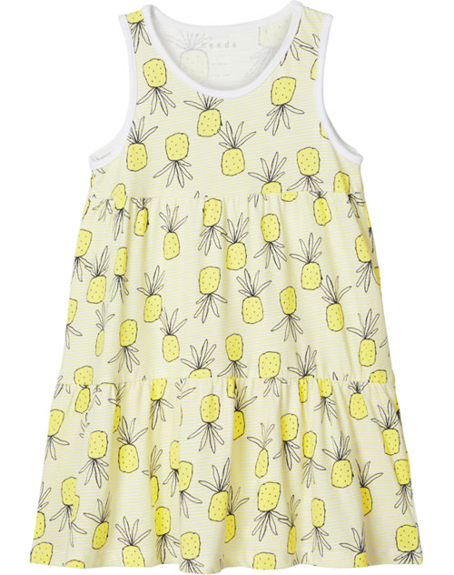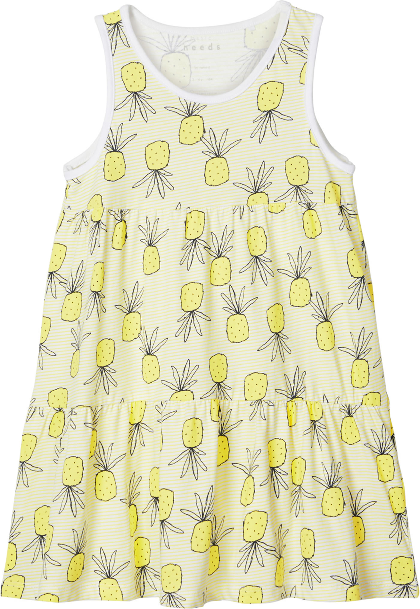 Ärmelloses Kleid für Mädchen von NAME IT. Der lockere Schnitt und der leichte Stoff des Kleides sind ideal für den Sommer. Die Gummibündchen der Volants sorgen für einen perfekten Sitz.