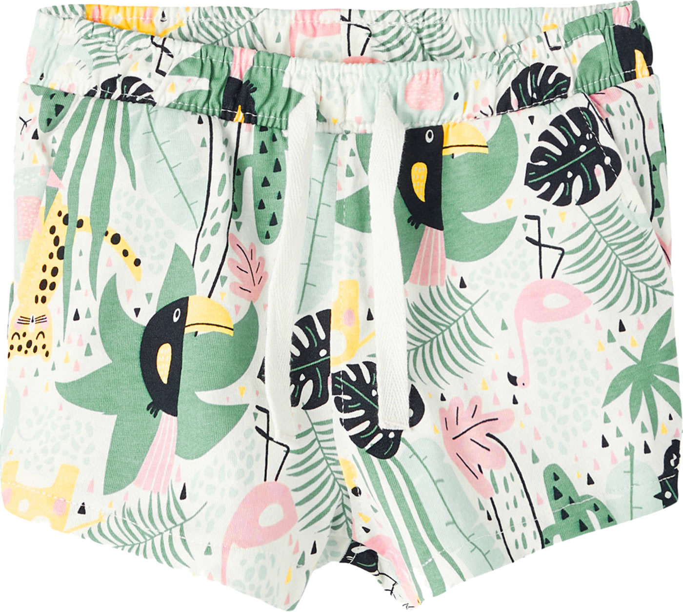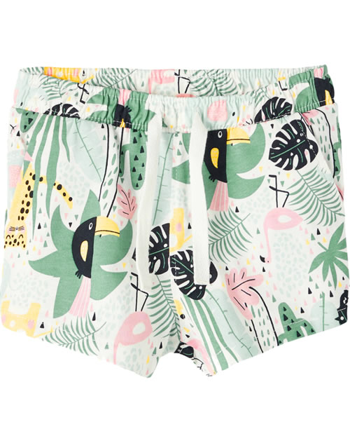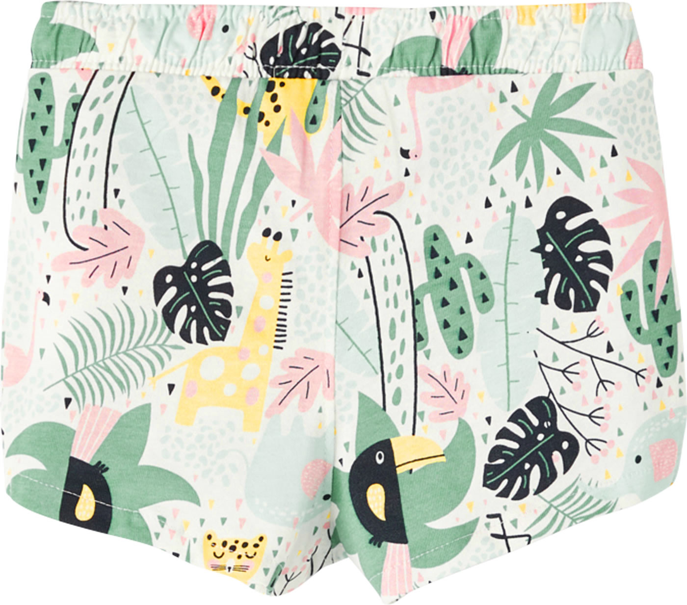 Sportliche Jersey-Shorts von NAME IT für Mädchen. Das elastische Bündchen sorgt für einen perfekten Sitz. Zwei Einstecktaschen bieten Platz für Kleinigkeiten. Die Shorts hat einen tollen Allover-Druck mit Dschungelmotiven. Ein schönes Detail ist die Zierkordel.