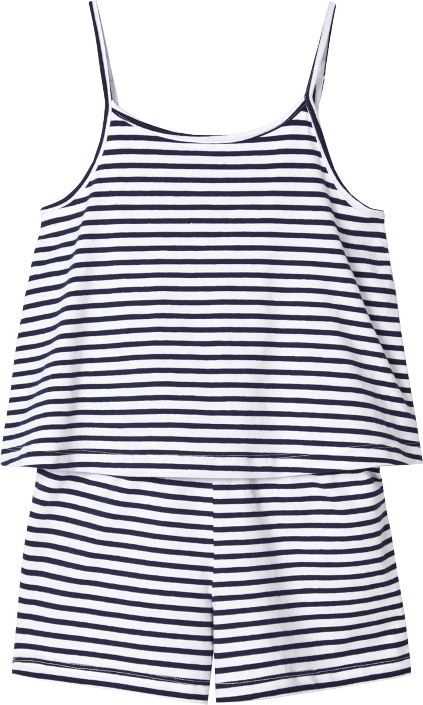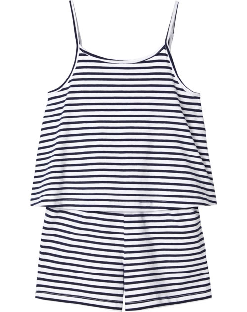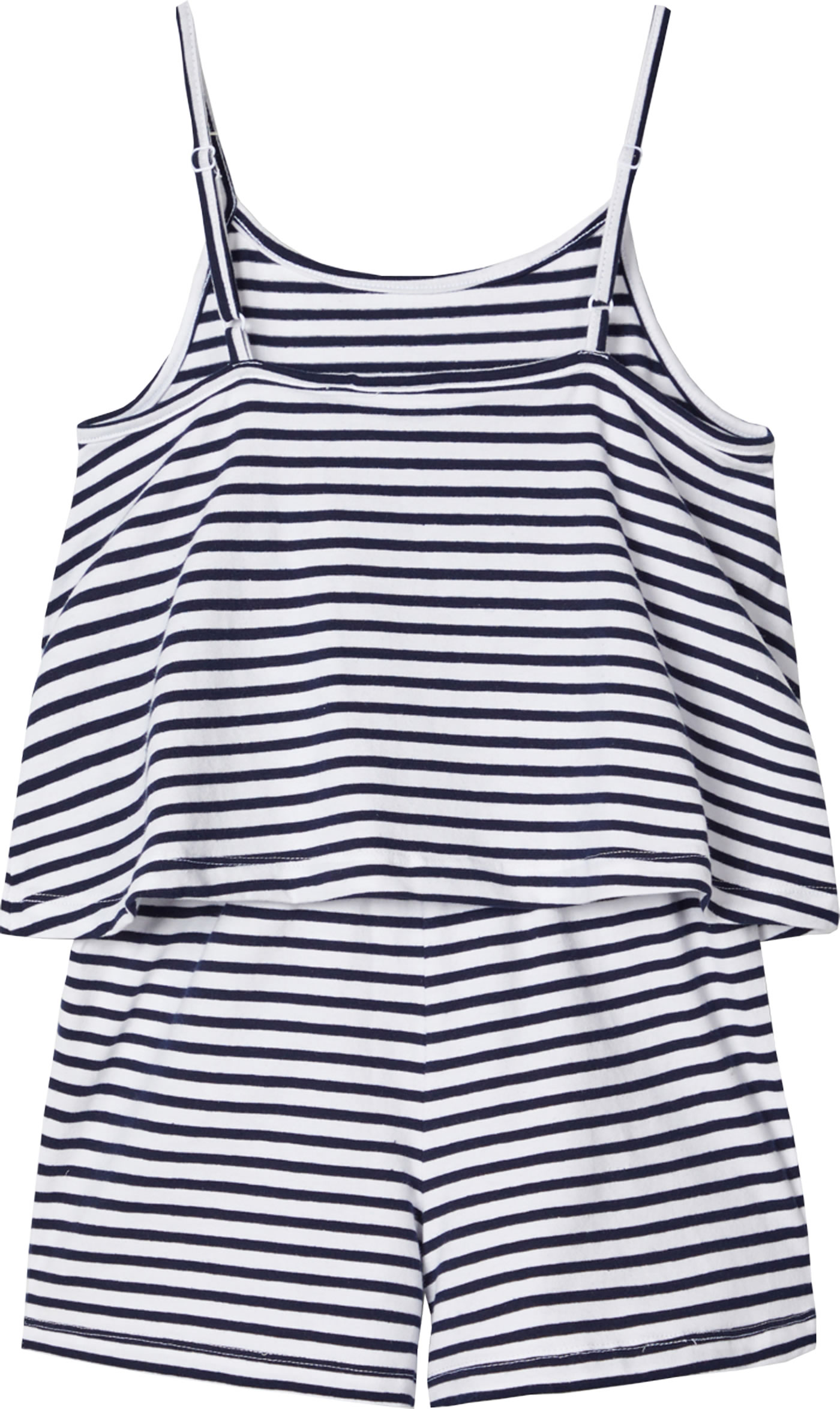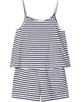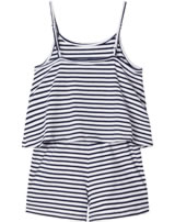 Hübscher Jumpsuit in dunkelblau/weiß gestreift von NAME IT. Schöne Details, wie das doppellagige Oberteil machen ihn zu einem tollen Hingucker. Der schmale Gummi-Bund in der Taille, sowie verstellbare Träger sorgen für einen guten Tragekomfort. Das leichte Material macht den Jumpsuit zu einem Lieblingsstück an warmen Sommertagen.