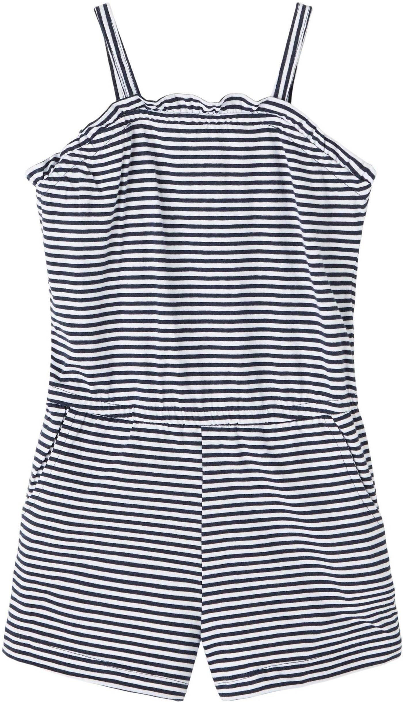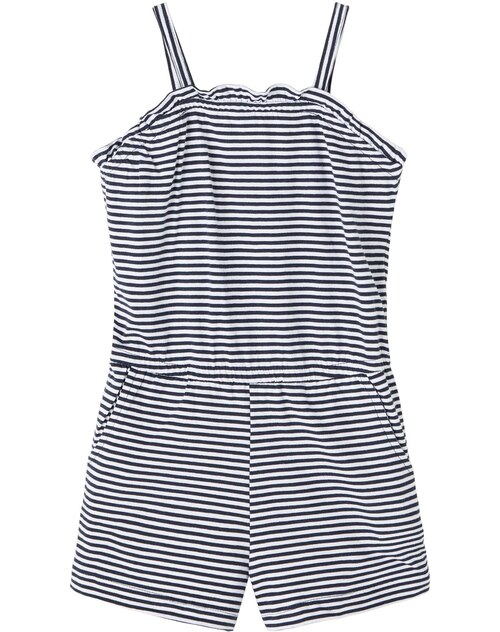 Gestreifter Träger-Jumpsuit für Mädchen von NAME IT. Die Gummibündchen in der Taille und am Oberteil sorgen für einen guten Sitz. Zwei Taschen vorn bieten Platz für Kleinigkeiten. Das leichte Material macht den Jumpsuit zu einem Lieblingsstück an warmen Sommertagen.