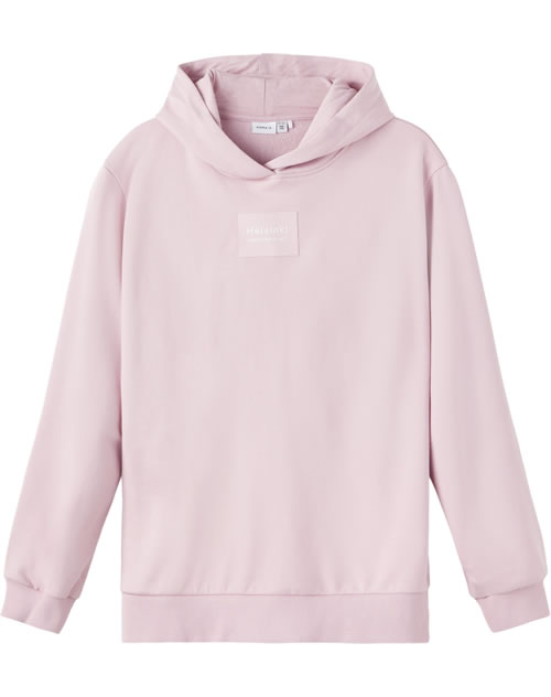 Weit geschnittenes Sweatshirt mit Kapuze für Mädchen von NAME IT. Das Sweatshirt ist ein Basic und lässt sich prima kombinieren. Es hat eine tolle Applikation auf der Vorderseite. Das Futter der Kapuze ist aus weichem Jersey.