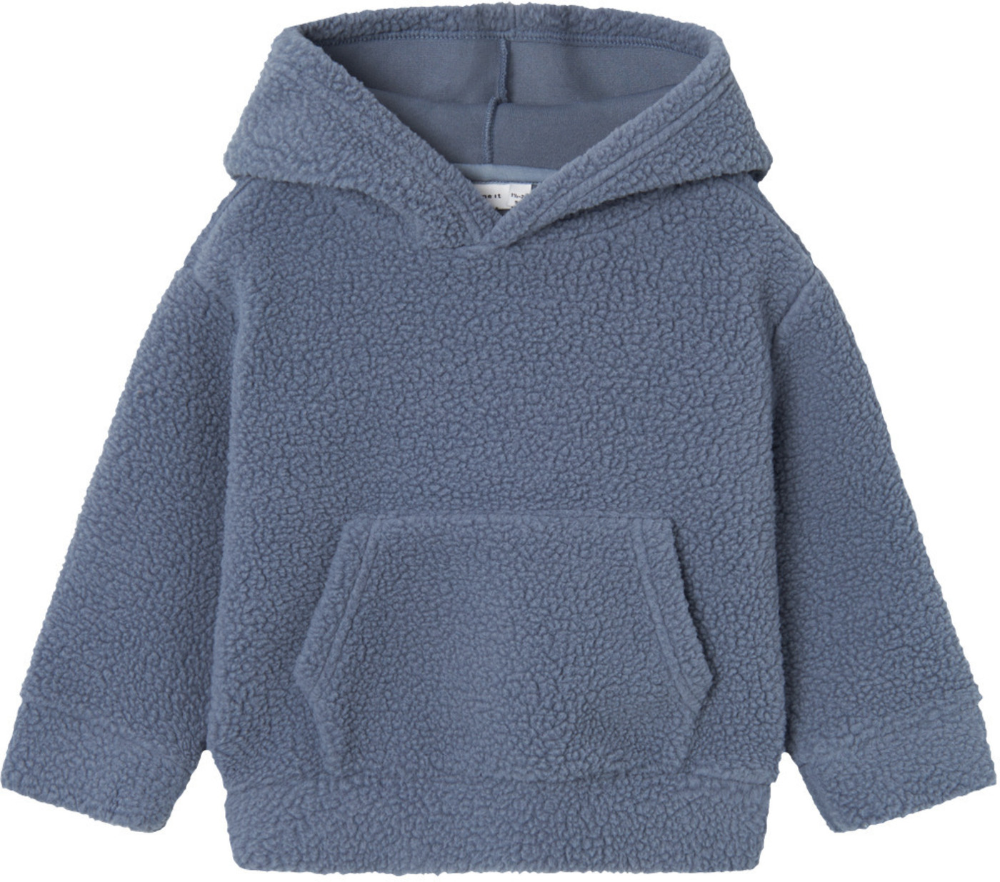 Sweatshirt mit Kapuze von NAME IT für Kinder. Dieser Hoodie aus recyceltem Polyester ist der perfekte Begleiter für die kalte Jahreszeit. Die Kängurutasche bietet Platz für Kleinigkeiten