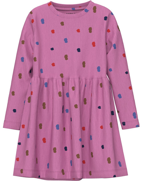 Hübsches Kleid mit langen Ärmeln von NAME IT. Der Gummizug in der Taille sorgt für einen guten Sitz. Das Muster zieht alle Blicke auf sich. Das weiche Material bietet einen hohen Tragekomfort.