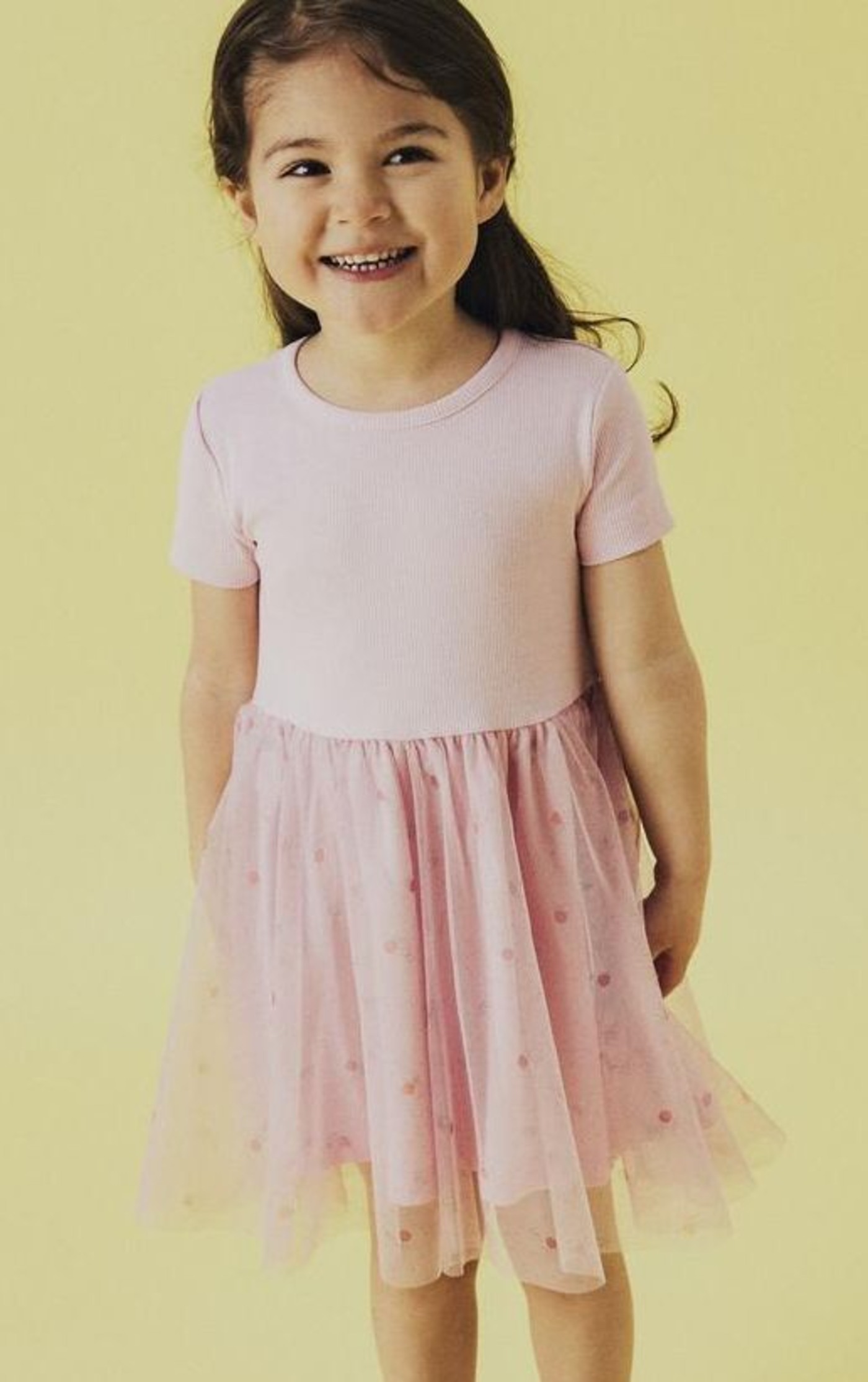 Hübsches Kleid von Name it. Der Tüllrock macht jede Bewegung mit.