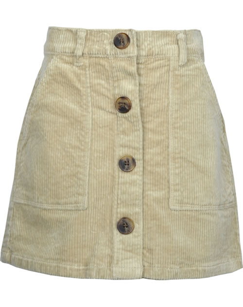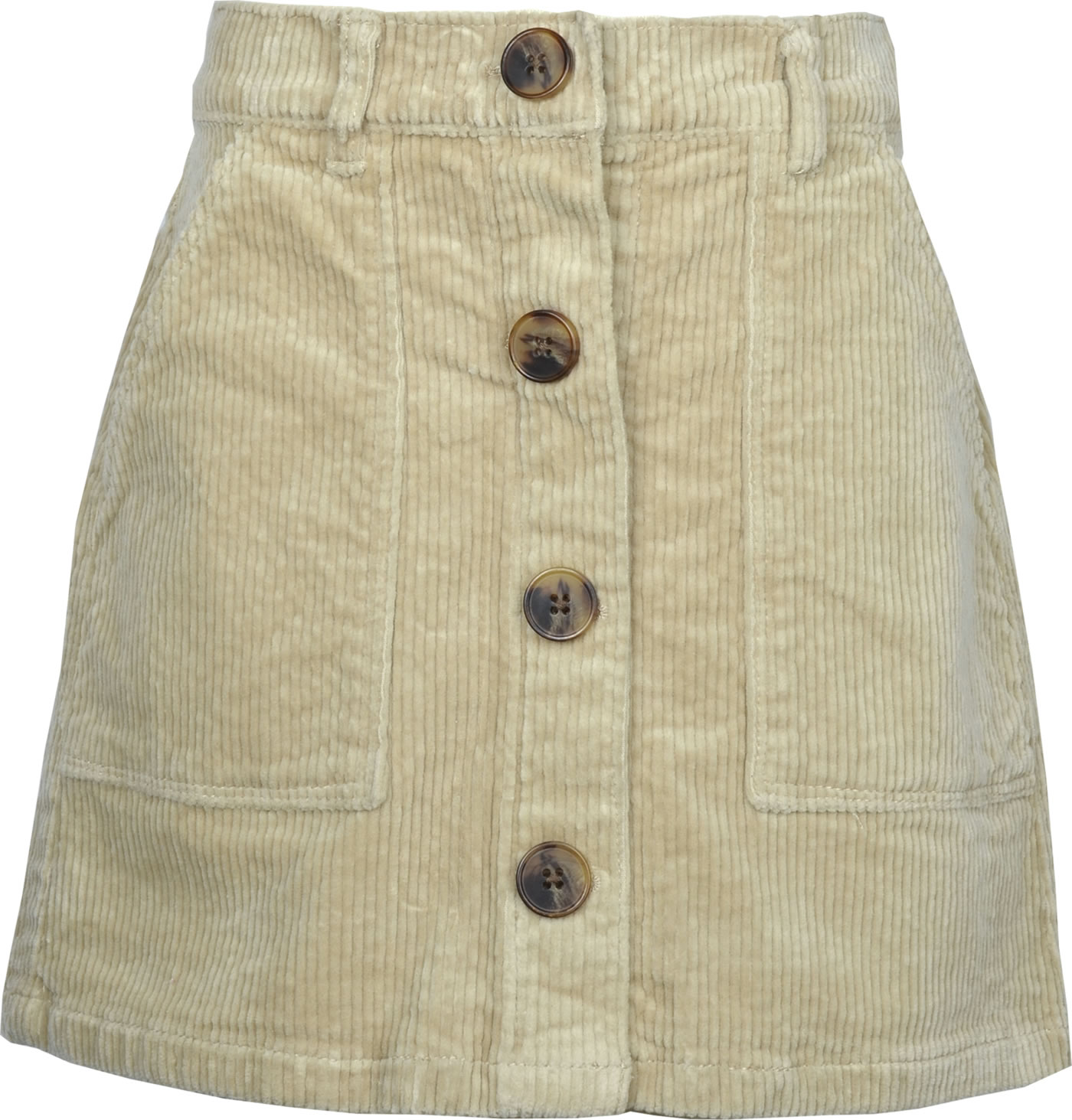 Hübscher Kord-Mini-Rock in white pepper von NAME IT. Die brauenen Zierknöpfe sowie die großen Einstecktaschen vorn sind hübsche Details. Durch den breiten Kord erhält der Rock einen robusten Charakter. Der Bund ist innen verstellbar. Das angenehme Material macht ihn schnell zum Lieblingsstück.