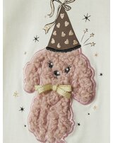 Die Applikation vom süßen Pudel, der Geburtstag feiert, auf der Vorderseite ist der Hingucker. 🐩🎉
