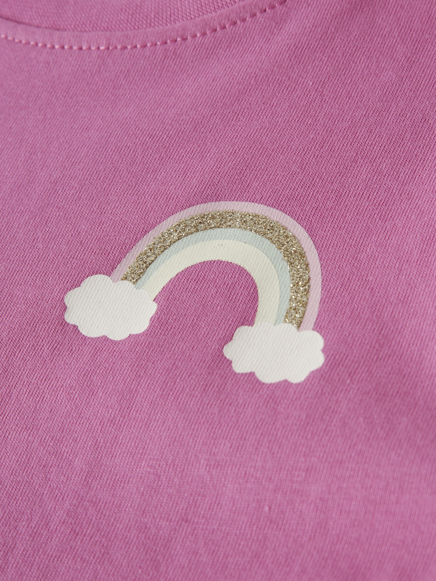 Auf Brusthöhe begeistert es mit einem bedruckten Regenbogen. 🌈