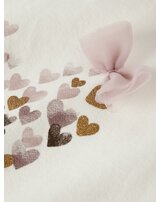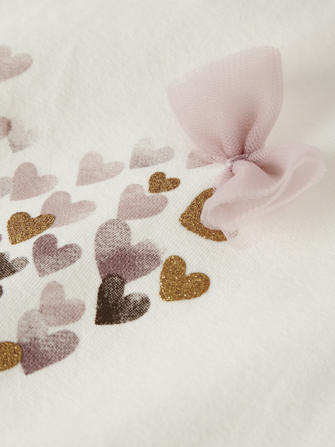 Der Aufdruck von vielen Herzen auf der Vorderseite und die Tüllschleife sind die Hingucker. 💕🎀