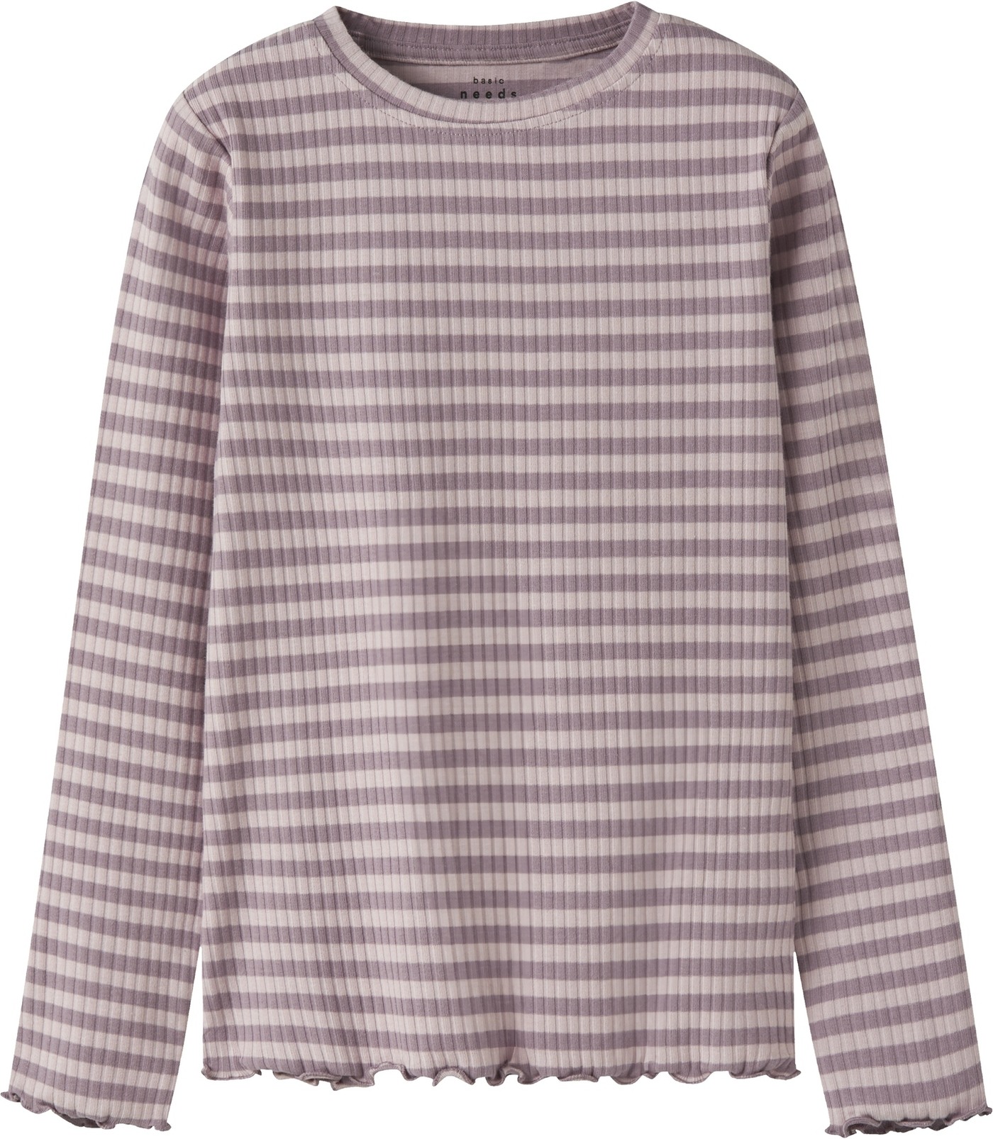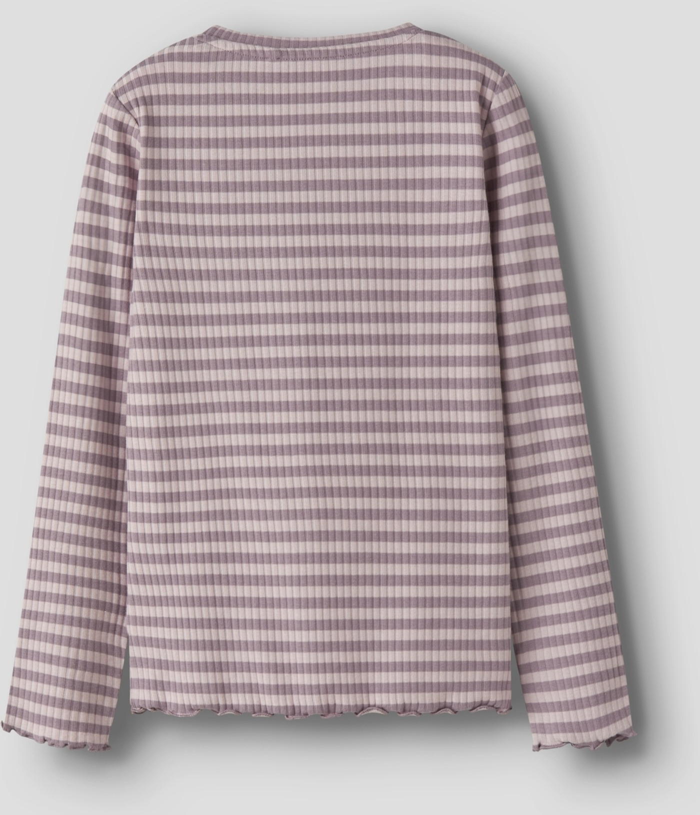 Dieses schöne Langarmshirt von Name it hat einen Rundhalsausschnitt, ist in den Farben Mauve und Rosa gehalten und fällt durch das moderne Streifen-Design auf. 🩷