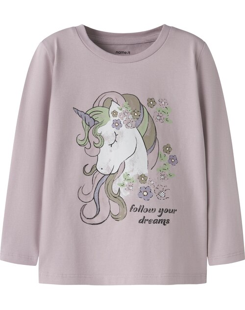 Name it Langarmshirt aus Bio-Baumwolle mit Einhorn NMFTULINEA - Dawn Pink