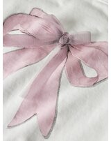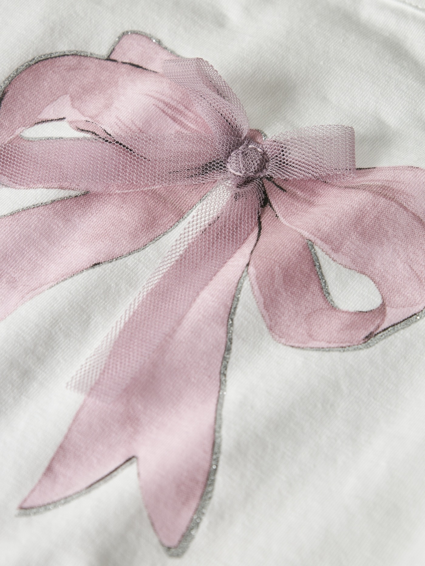 Die aufgedruckte Schleife mit Tüll- und Glitzerdetails auf der Vorderseite in der Blickfang. 🎀😍