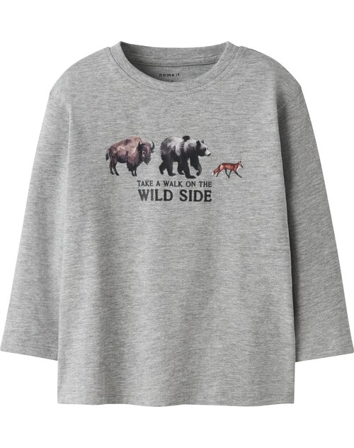 Name it Langarmshirt aus Bio-Baumwolle mit Wildtieren NMMORIS - Grey Melange