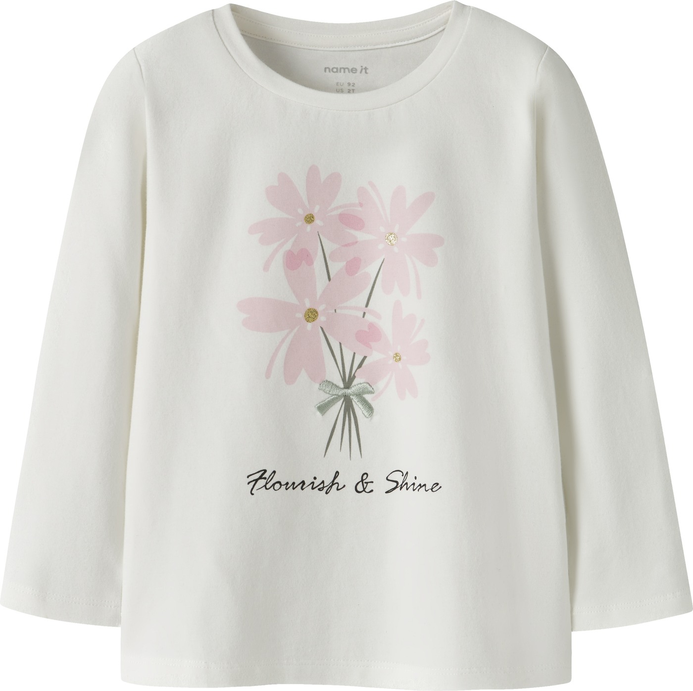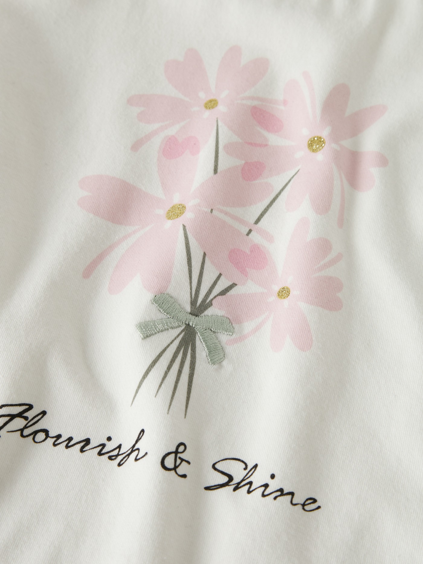 Der Blickfang ist der schöne Aufdruck auf der Vorderseite, der durch eine kleine Bestickung und Glitzerdetails ergänzt wird. 🌸