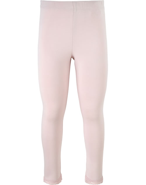 Hübsche Leggings von NAME IT für Mädchen. Die Leggings aus weichem Jersey hat einen weichen Gummibund, der für einen bequemen Sitz sorgt. Ein schönes Detail ist die Spitzenbordüre am Bein.