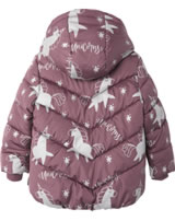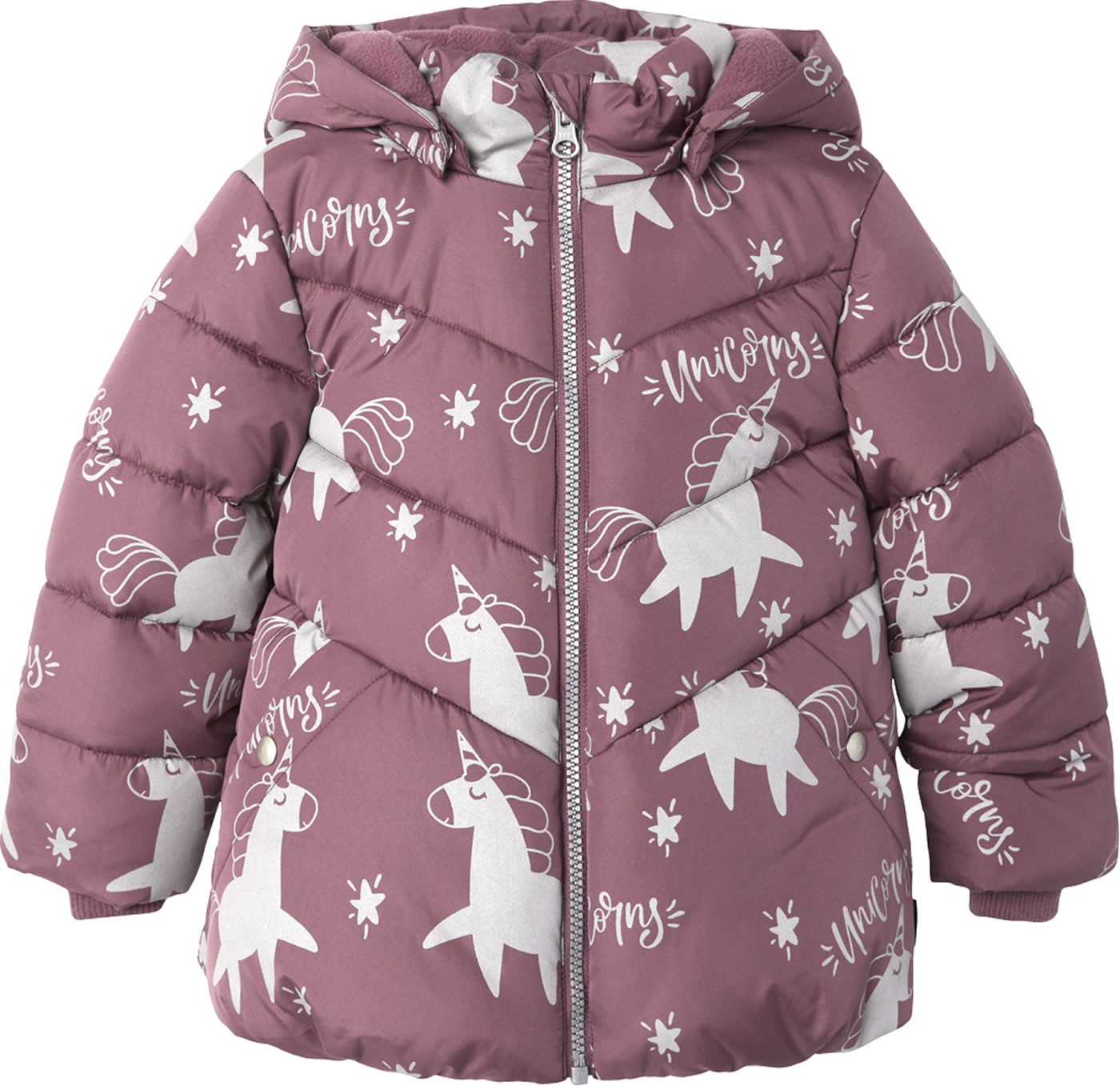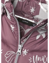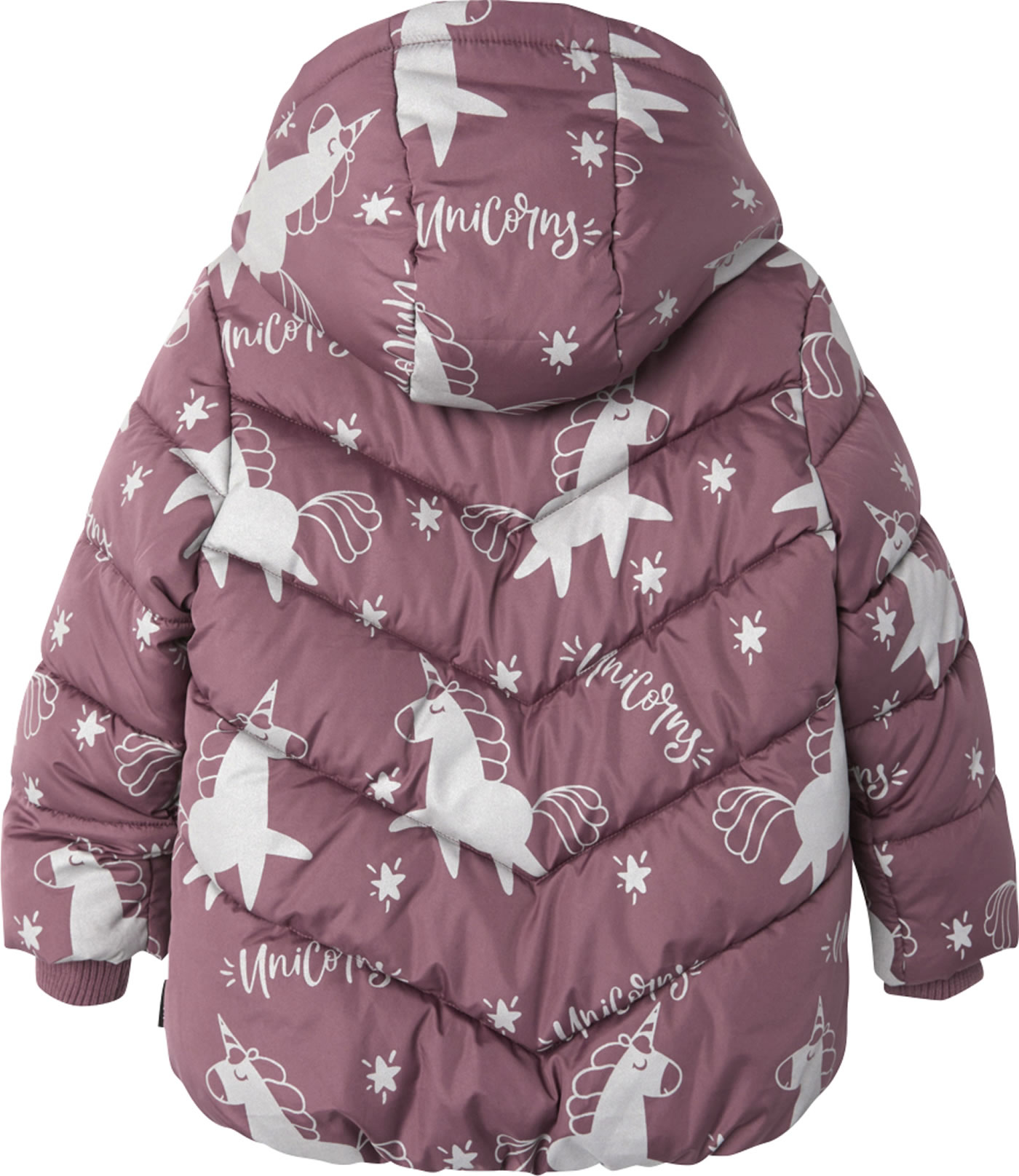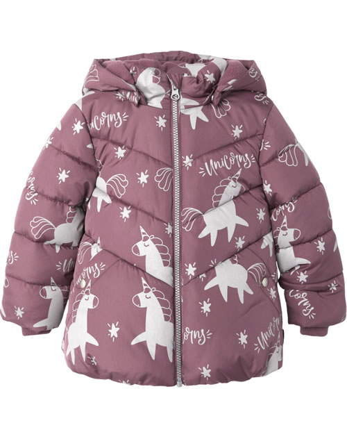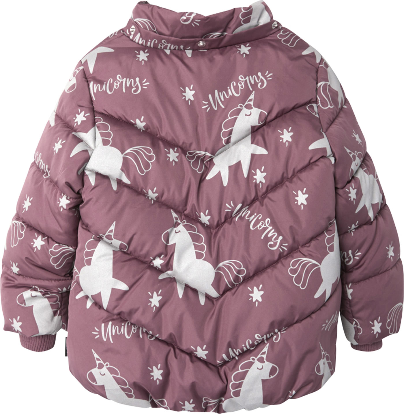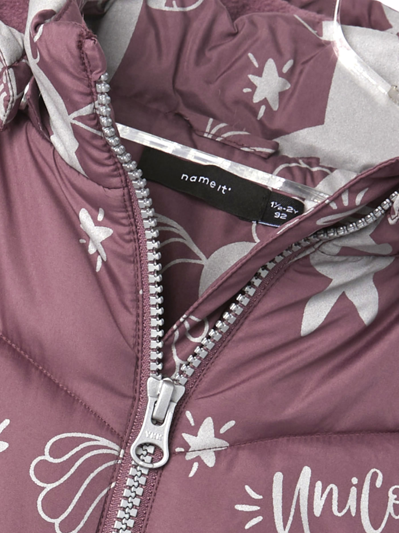 Taillierte Stepp-Jacke für Herbst und Winter mit mädchenhaftem Reflektor Allover-Print von NAME IT. Die zauberhafte Jacke hält schön warm und der reflektierende Einhorn-Druck sorgt dafür dass die Kleinen in der dunklen Jahreszeit auffallen und gut zu erkennen sind. Die Kapuze mit weichem Baumwollfutter lässt sich kinderleicht abknöpfen. Die zwei Einstecktaschen auf der Vorderseite lassen sich prima durch einen Druckknopf schließen und weiche Rippbündchen an den Ärmeln sorgen dafür dass kalter Wind draußen bleibt. Von innen ist die warme Winterjacke mit einem kuscheligen Baumwollfutter ausgestattet.