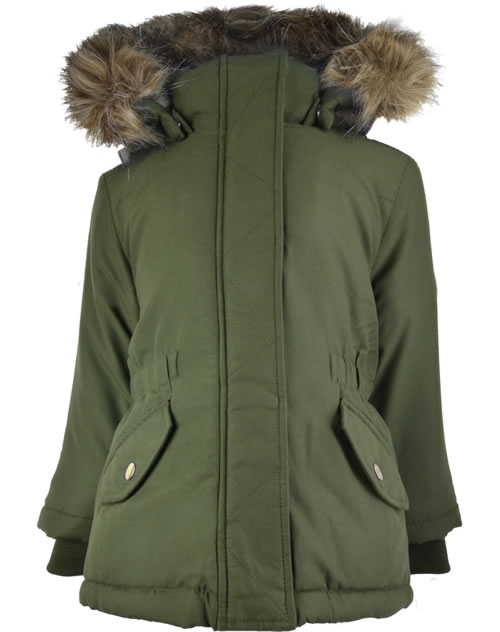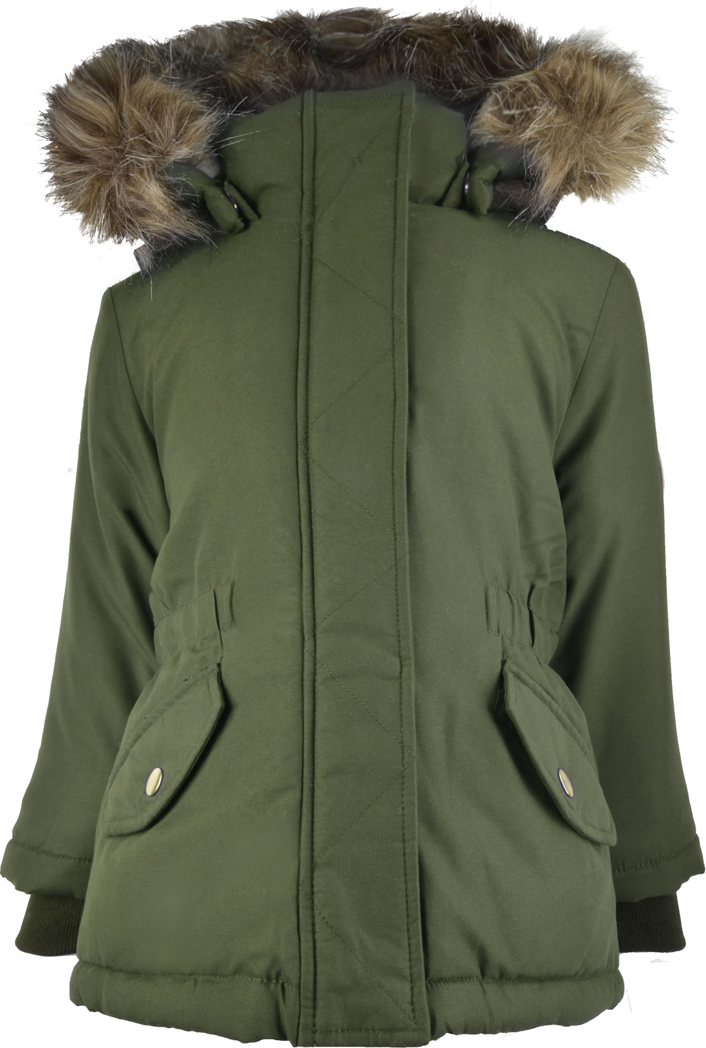 name it Mädchen Winter-Jacke m. Fell-Kapuze NMFMACE olive night