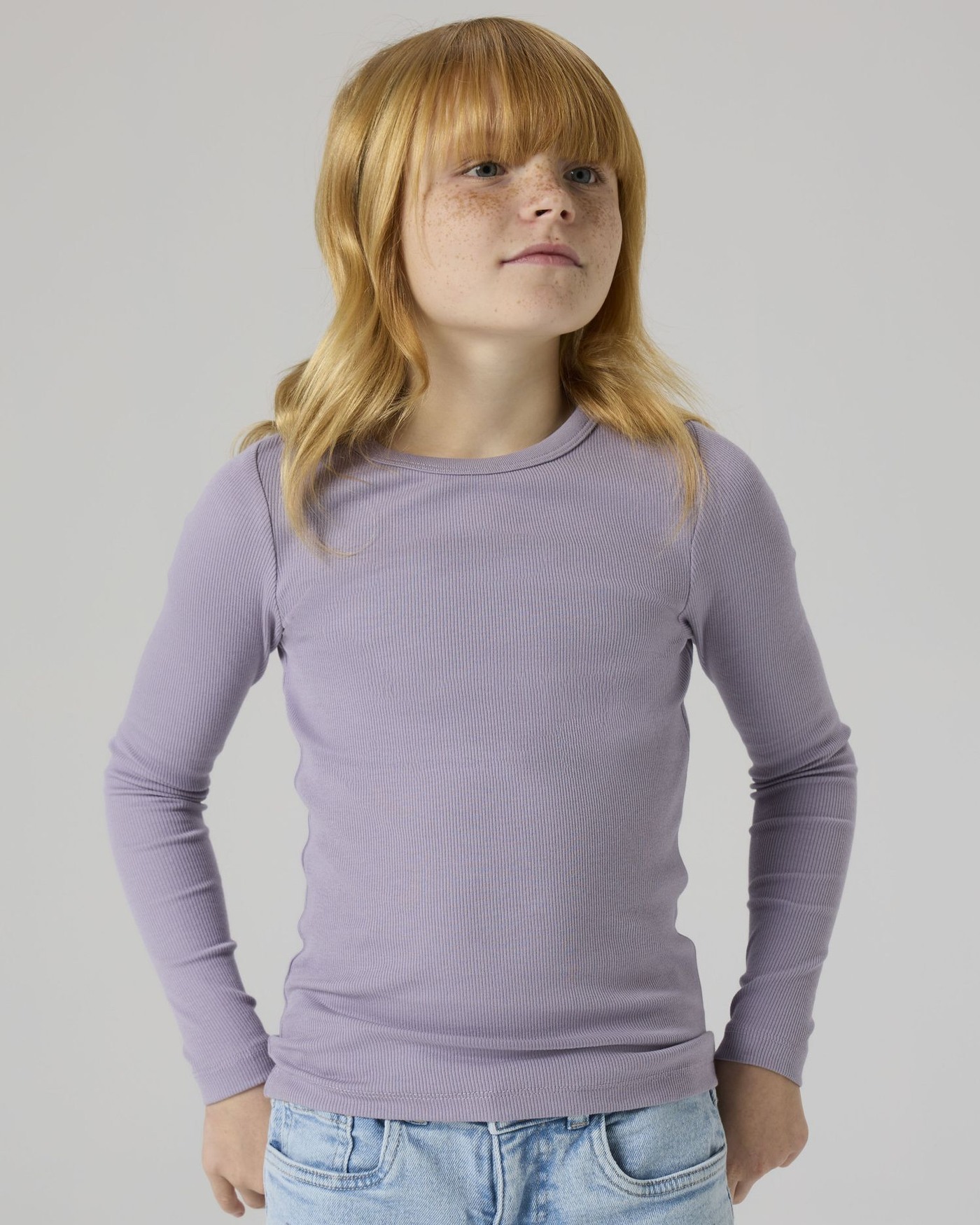 Name It Ripp-Langarmshirt aus Bio-Baumwolle NKFNAKAL - Lavender Gray