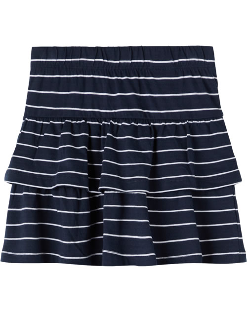 Rock mit Volant und Streifen von NAME IT. Dieser bequeme Rock ist weit ausgestellt und macht jede Bewegung mit. Ein breiter Gummizugbund sorgt für einen guten Sitz. Der Rock ist aus leichtem Stoff und ideal für warme Tage.