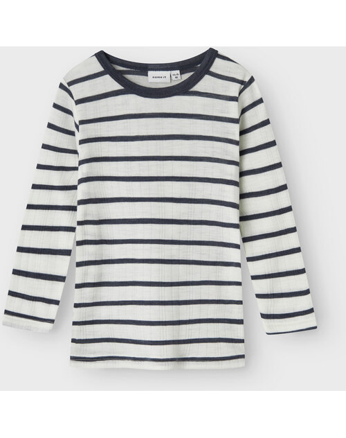 Langarmshirt für Jungen von NAME IT. Das T-Shirt aus Merinowolle ist klassich gestreift und lässt sich prima kombinieren. Das weiche Material sorgt für einen hohen Tragekomfort.