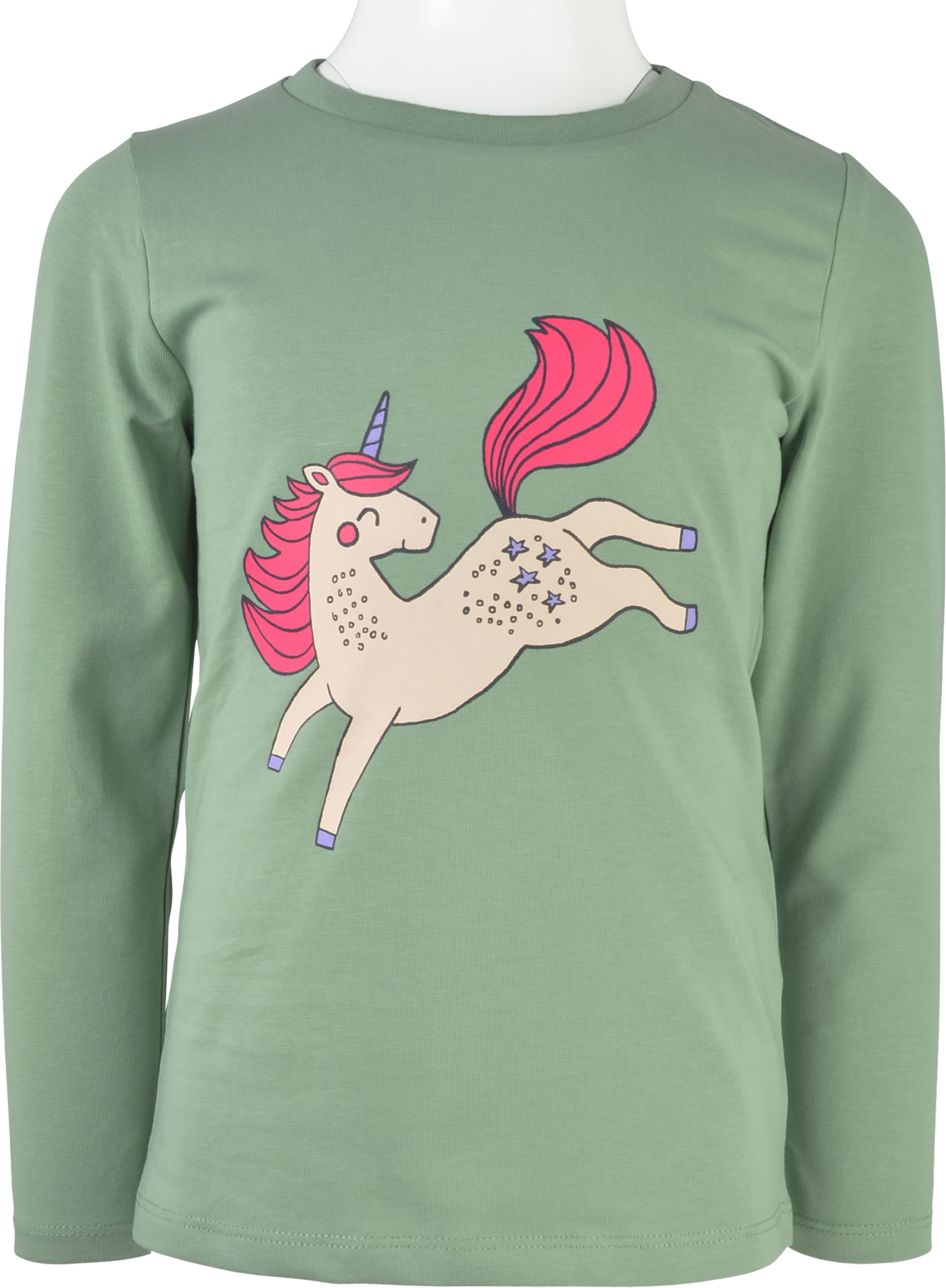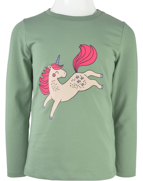 Langarmshirt für Mädchen von NAME IT. Das Shirt hat einen tollen Print mit einem Einhorn auf der Vorderseite. Das weiche Material sorgt für einen hohen Tragekomfort.