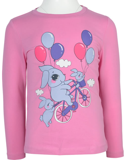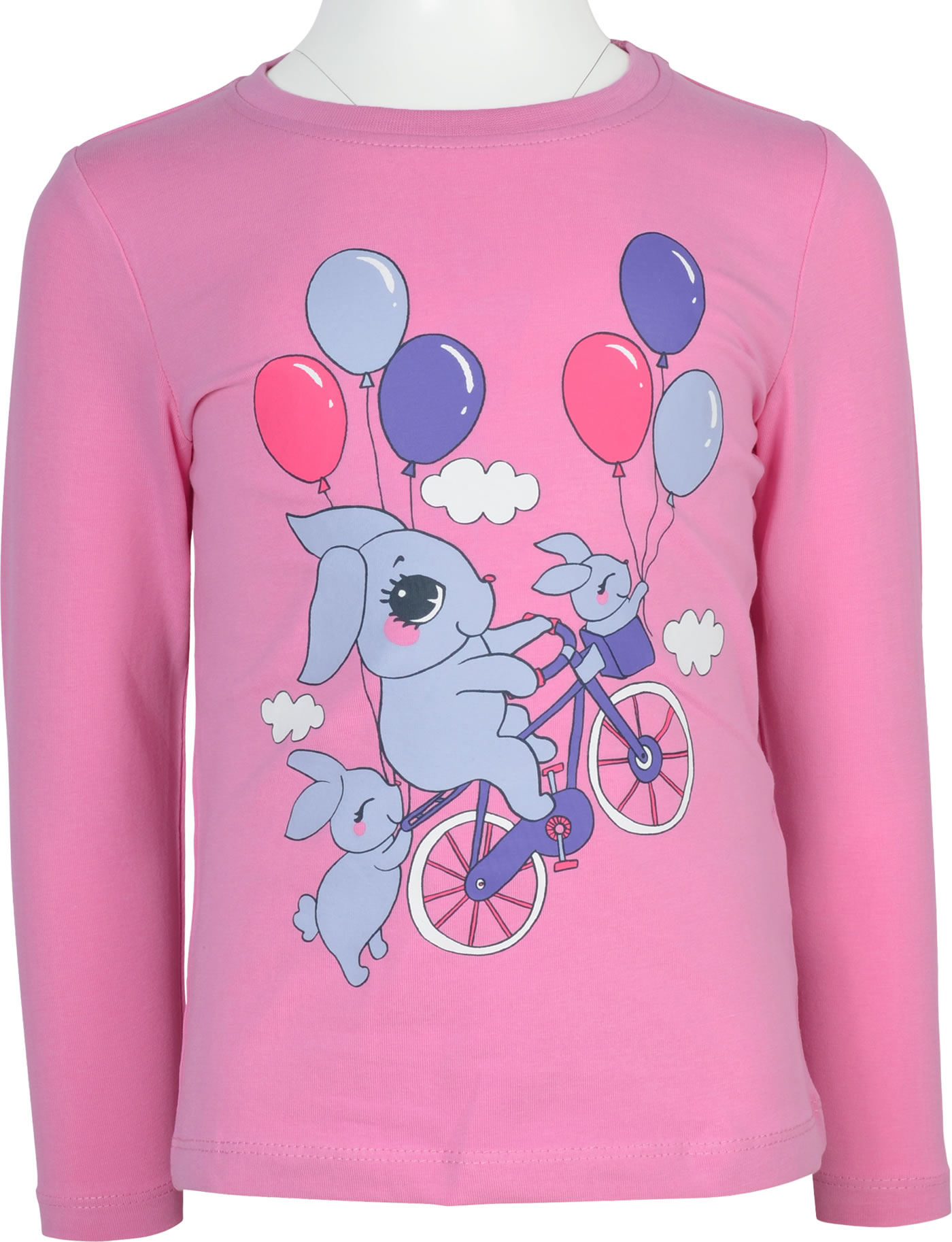 Langarmshirt für Mädchen von NAME IT. Das T-Shirt hat einen tollen Print mit Hasen und Luftballons auf der Vorderseite. Das weiche Material sorgt für einen hohen Tragekomfort. Die Rückseite ist etwas länger geschnitten.