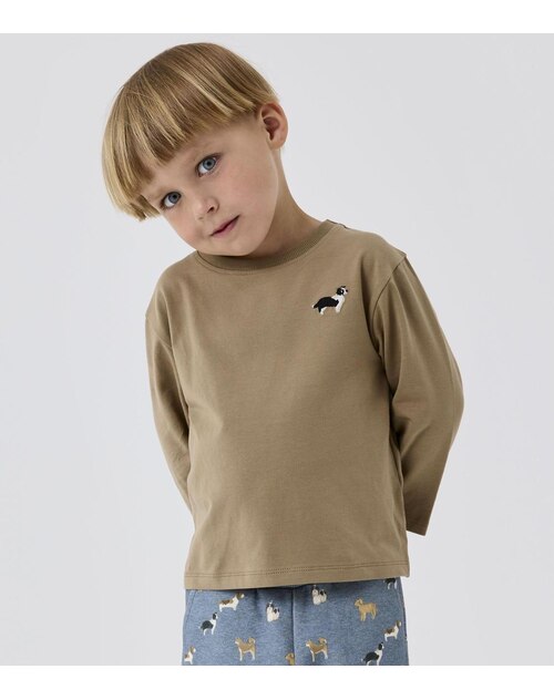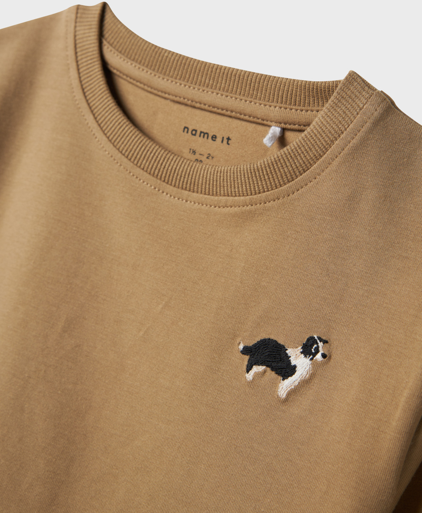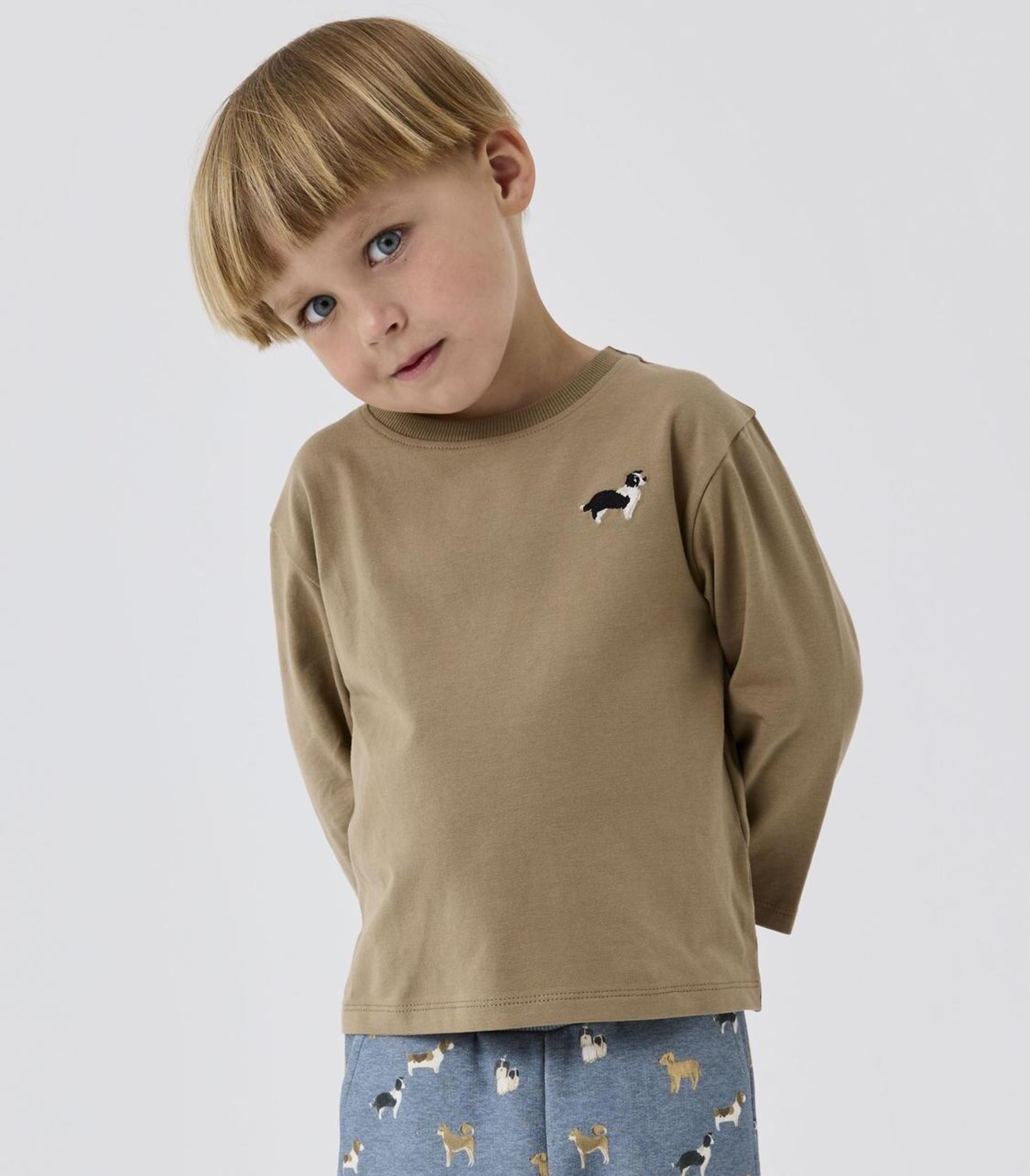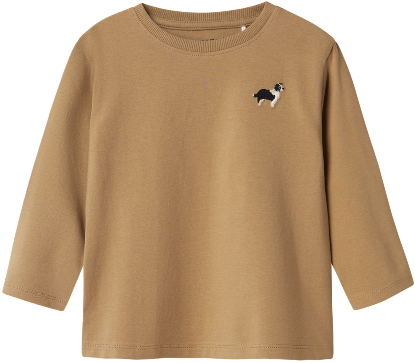 Langarmshirt für Jungen von NAME IT. Das Shirt hat einen niedlichen gestickten Hund auf der Vorderseite. Das weiche Material sorgt für einen hohen Tragekomfort.