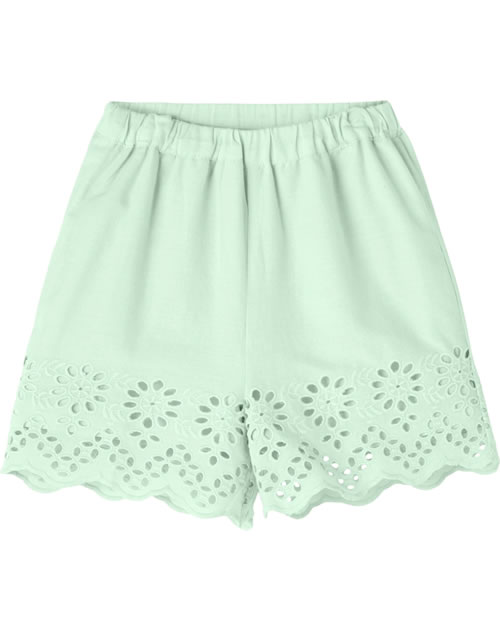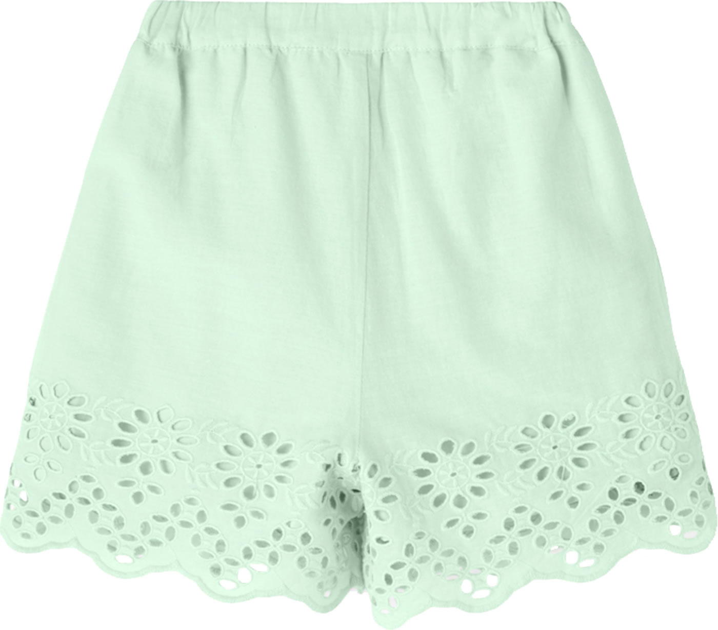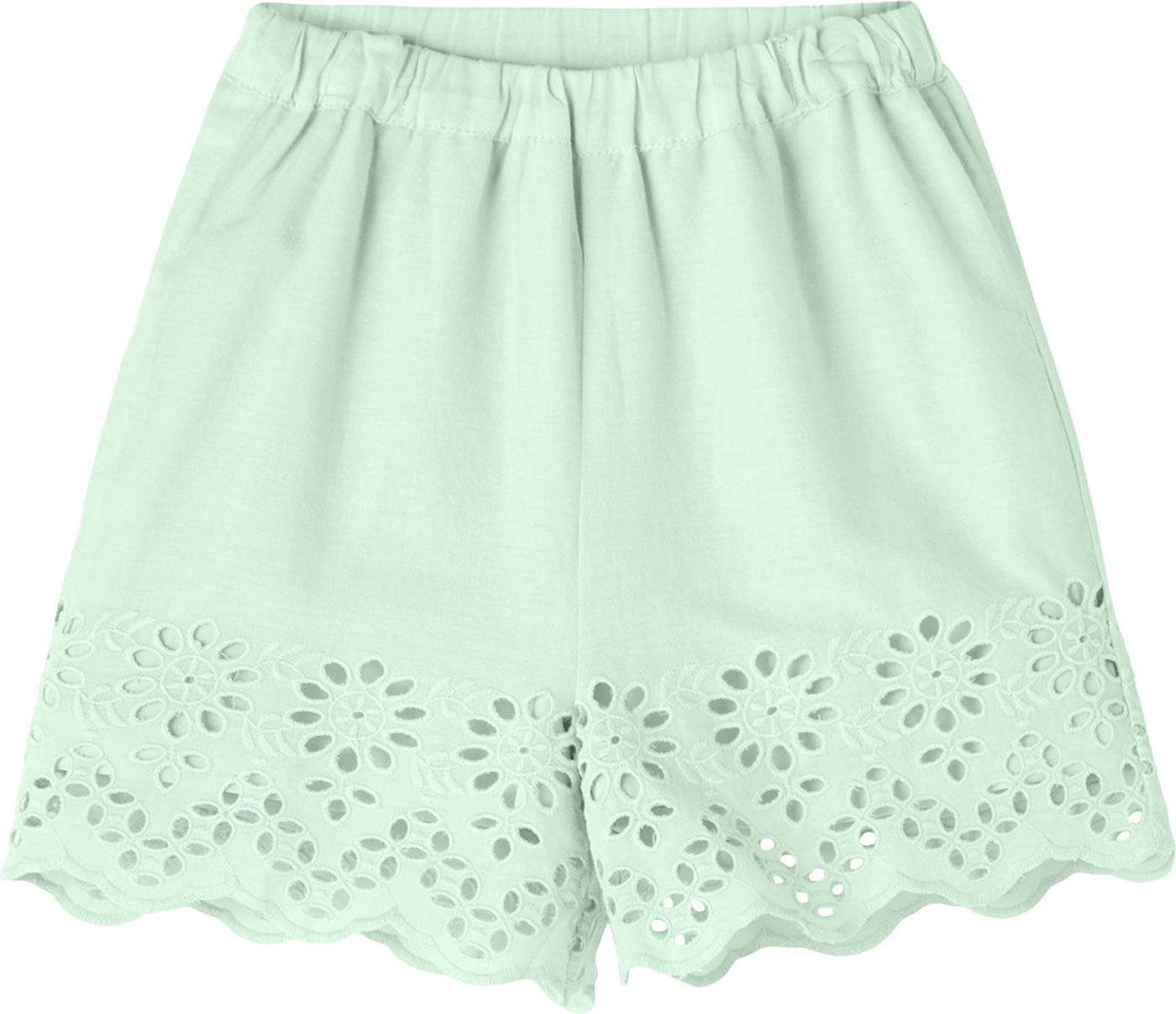 Hübsche Shorts aus Baumwollstoff von NAME IT für Mädchen. Das elastische Bündchen, das sich in der Weite verstellen lässt, sorgt für einen perfekten Sitz. Für Blickdichte sorgt ein Futter. Besonders schön ist das Lochmuster am Saum.