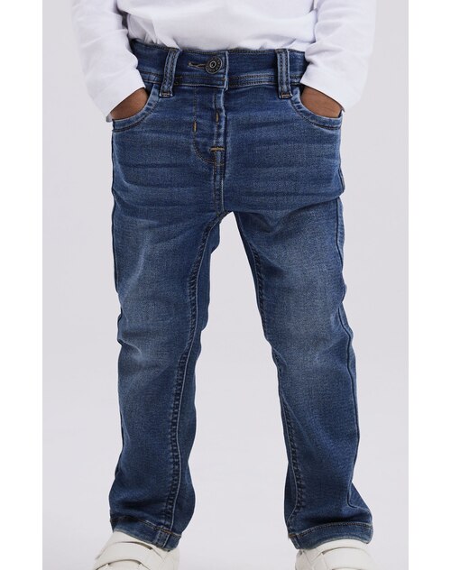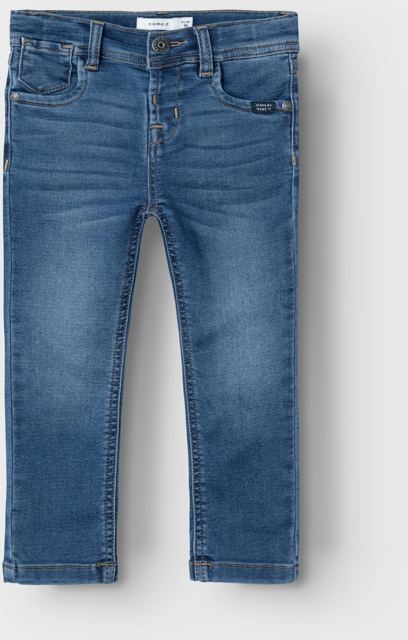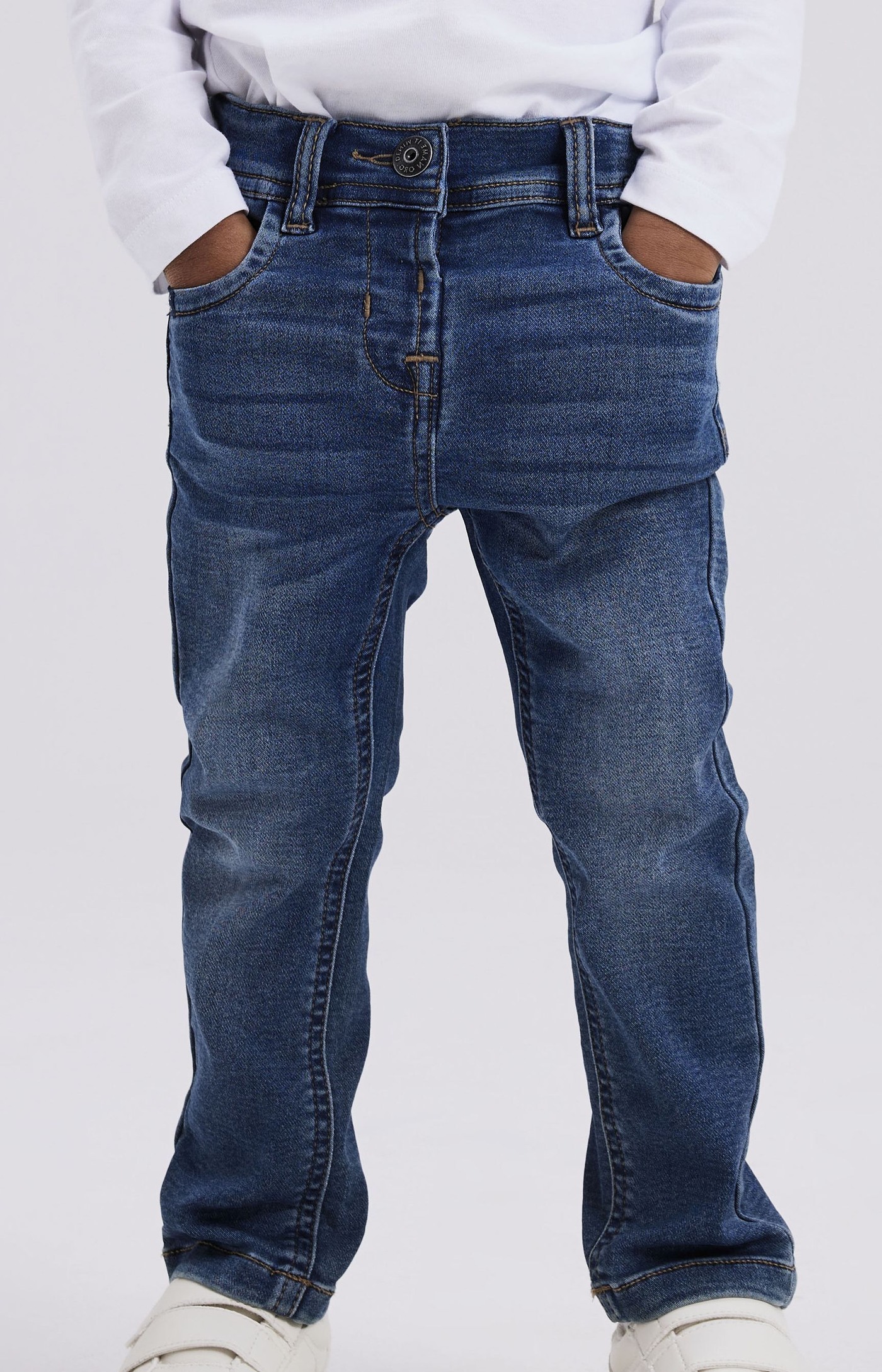 Diese eng geschnittene Sweat Denim-Jeans mit hohem Stretch-Anteil in dark blue denim von Name it ist das perfekte Basic für stylische Jungen. 😎