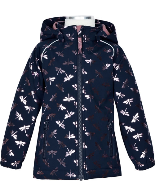 Softshell-Jacke mit funkenden Folien-Libellen von NAME IT für Mädchen aus atmungsaktivem, wasser- und winddichtem Material.