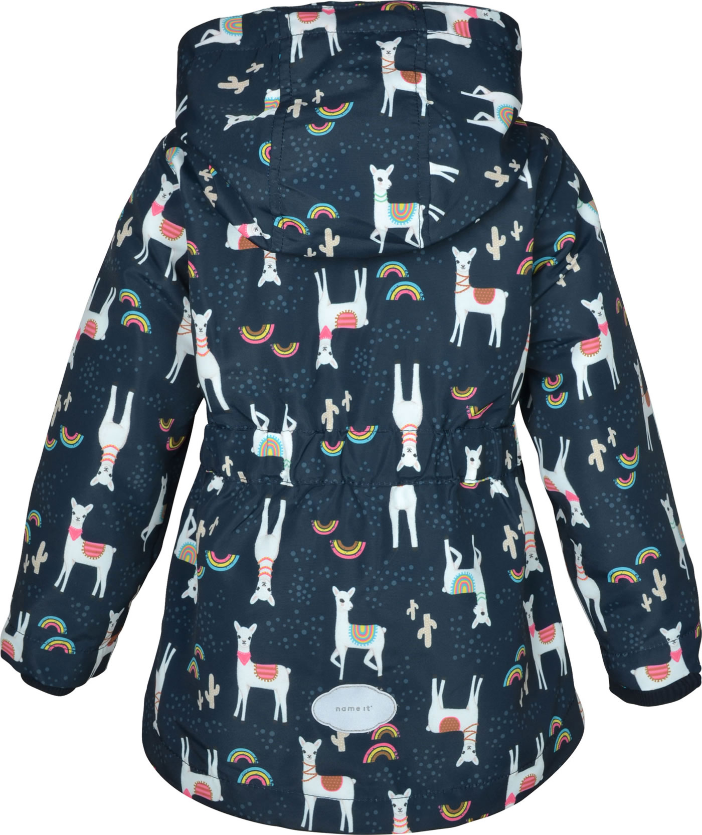 Softshell Jacke mit abnehmbarer Kapuze und tollen Lama-Motiven von NAME IT für Mädchen. Die bequeme Jacke ist komplett mit weichem Baumwoll-Stoff gefüttert. gefüttert. Auf der Vorderseite befinden sich zwei Einsteck-Taschen. Die Jacke lässt sich per Reißverschluss schließen. Gummizugbündchen in den Ärmeln bieten zusätzlichen Windschutz. Reflektoren sorgen für eine bessere Sichtbarkeit im Dunkeln. Die Bionic-Finish ECO Imprägnierung basiert auf einer fluorfreien Rezeptur und hält die Farbe und das Gewebe länger neu.