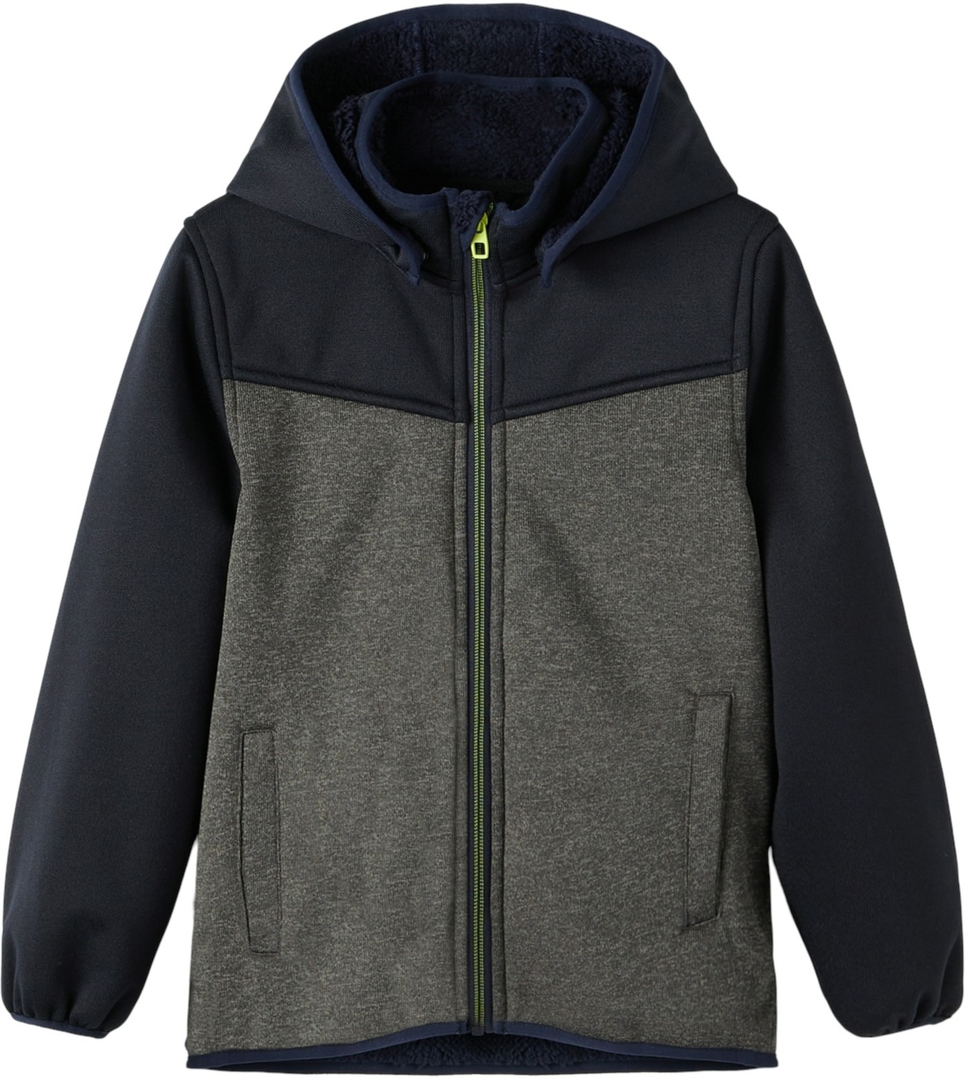 Softshell-Jacke mit abnehmbarer Kapuze von NAME IT für Jungen. Die bequeme Jacke ist komplett mit weichem Teddyplüsch gefüttert. Auf der Vorderseite befinden sich zwei Taschen. Gummizugbündchen an den Ärmeln bieten zusätzlichen Windschutz.