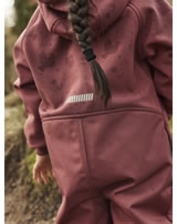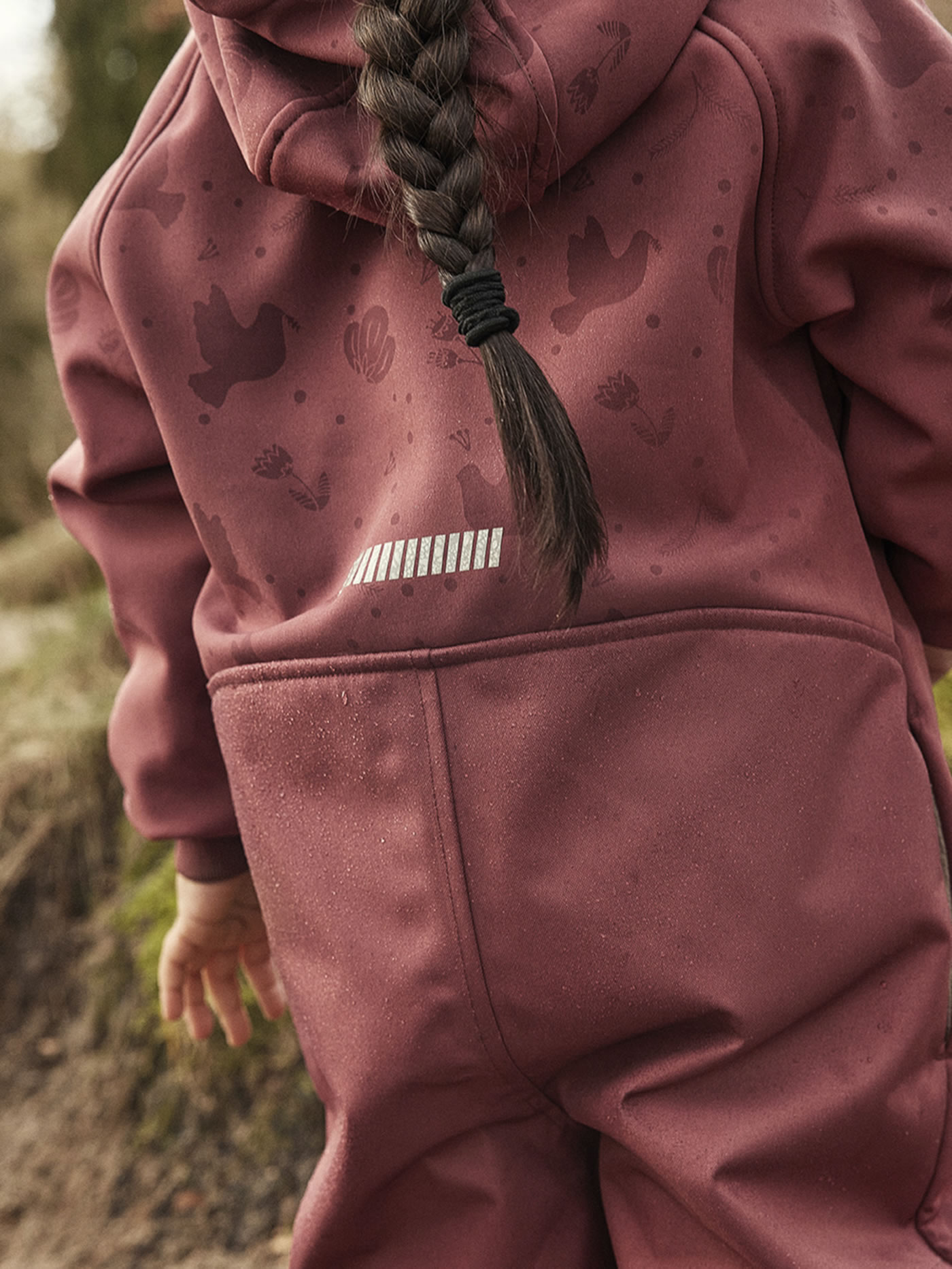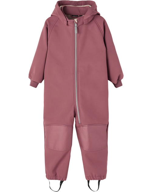Softshell Overall von NAME IT aus atmungsaktivem, wasser- und winddichtem Stoff für Mädchen. Das Oberteil ist mit einer abnehmbaren Kapuze ausgestattet. Die Ärmel- und die Bein-Bündchen haben einen Gummizug. Damit die Hosenbeine nicht nach oben rutschen, sind Fußstege vorhanden. Der Fußsteg ist verstellbar und kann auch ganz abgenommen werden. Für gute Sichtbarkeit im Dunkeln sorgen reflektierende Elemente. Am Po und den Knien ist der Stoff verstärkt und weiches Fleece-Futter sorgt für angenehme Wärme. Der Overall ändert sein Aussehen, sobald er nass wird. Dann kommen magische Prints zum Vorschein.