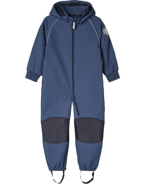 Sportlicher Softshell-Overall von NAME IT für Jungen und Mädchen aus atmungsaktivem, wasser- und winddichtem Stoff. Das Oberteil ist mit einer abnehmbaren Kapuze ausgestattet und mit weichem Fleece gefüttert. Der Gesäßbereich und die Knie sind mit besonders stabilem Stoff verstärkt.