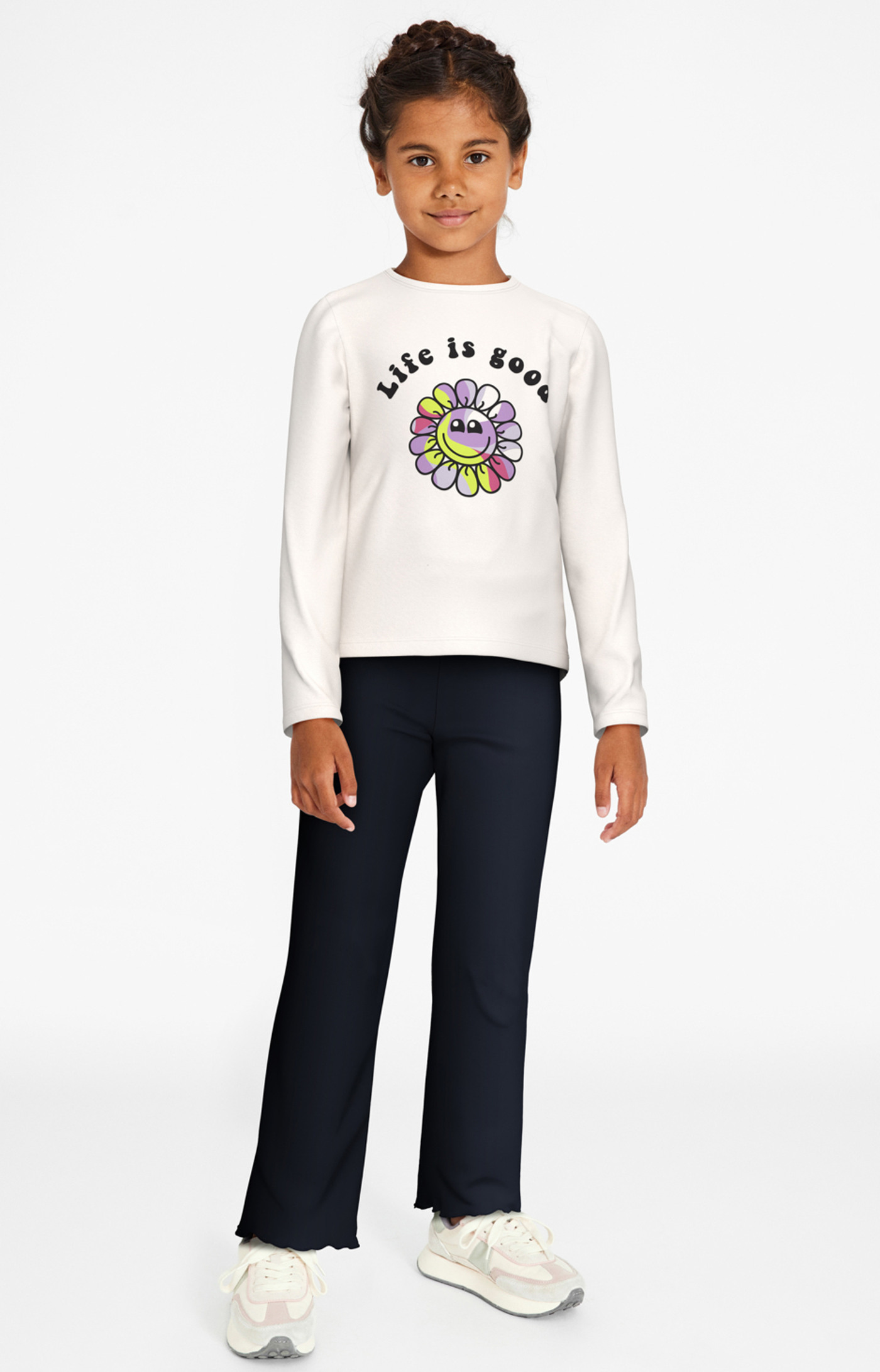 Weit geschnittene Hose aus leichtem Jersey für Mädchen von NAME IT. Diese Hose macht jedes Outfit zu einem Blickfang. Der elastische Bund sorgt für einen optimalen Sitz. Die wellenförigen Beinabschlüsse runden die Optik dieser Hose ab.