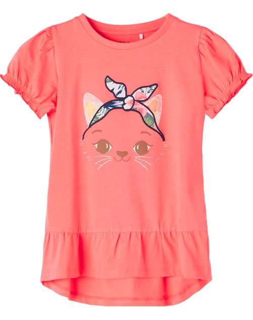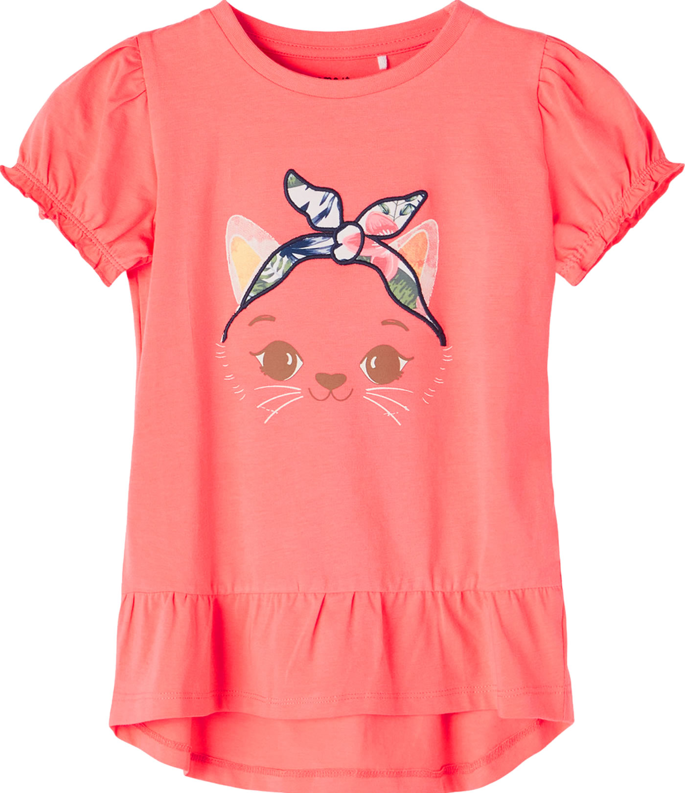 Tunika aus leichtem Baumwollgemisch mit gerafften Ärmeln von NAME IT. Der lockere Schnitt der Tunika bietet viel Bewegungsfreiheit und lässt sich prima mit einer Leggings kombinieren. Ein schönes Detail ist das niedliche Katzengesicht auf der Vorderseite.