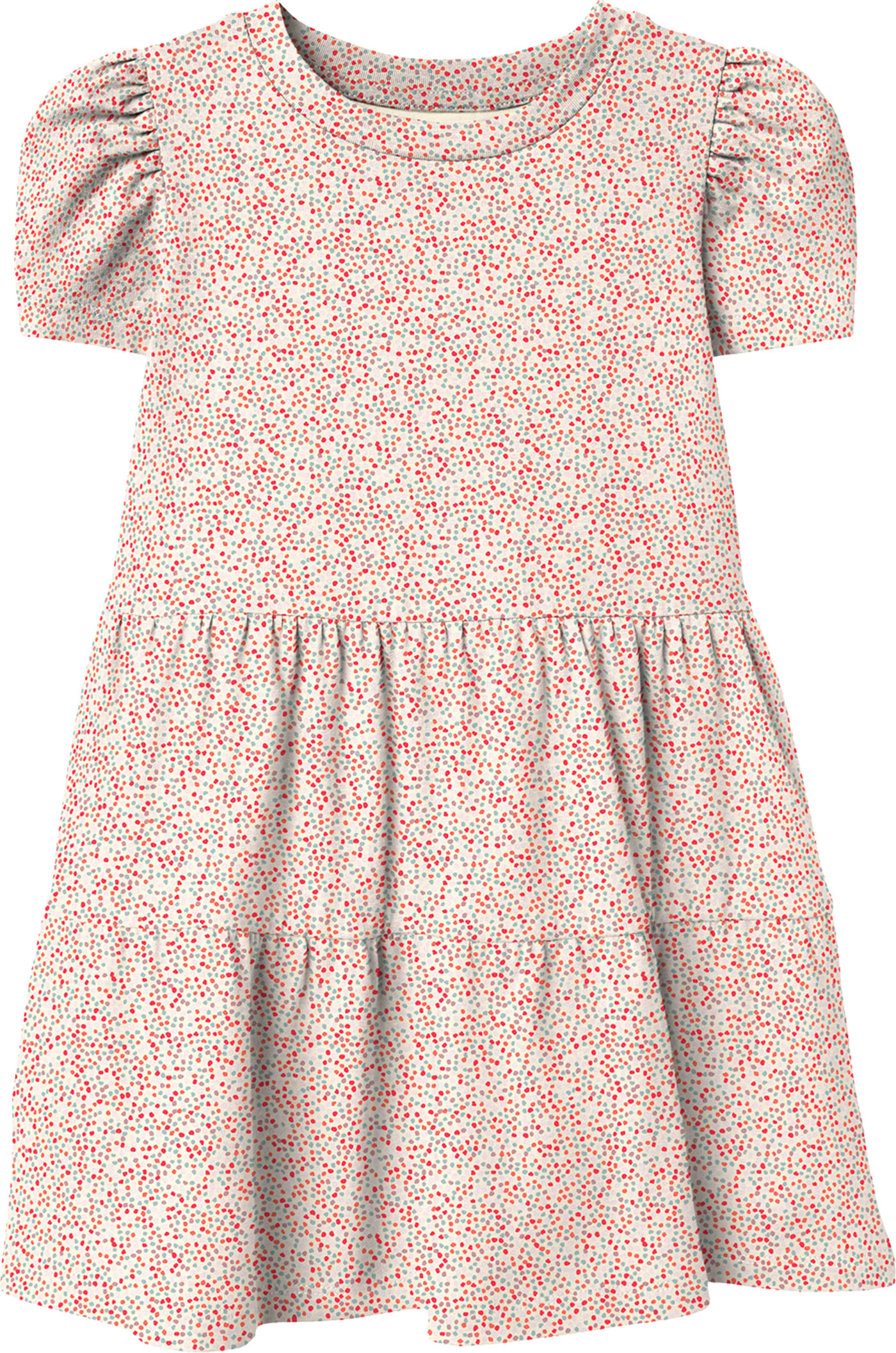 Tolles Sommerkleid mit kurzen Ärmeln von NAME IT. Der lockere Schnitt des Kleides bietet viel Bewegungsfreiheit. Das Kleid hat einen tollen Alloverdruck. Der Rockteil ist leicht gerafft. Ein Gummibund in der Taillie sorgt für den perfekten Sitz.