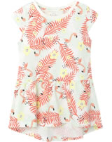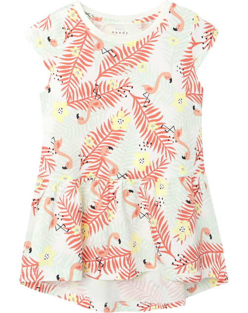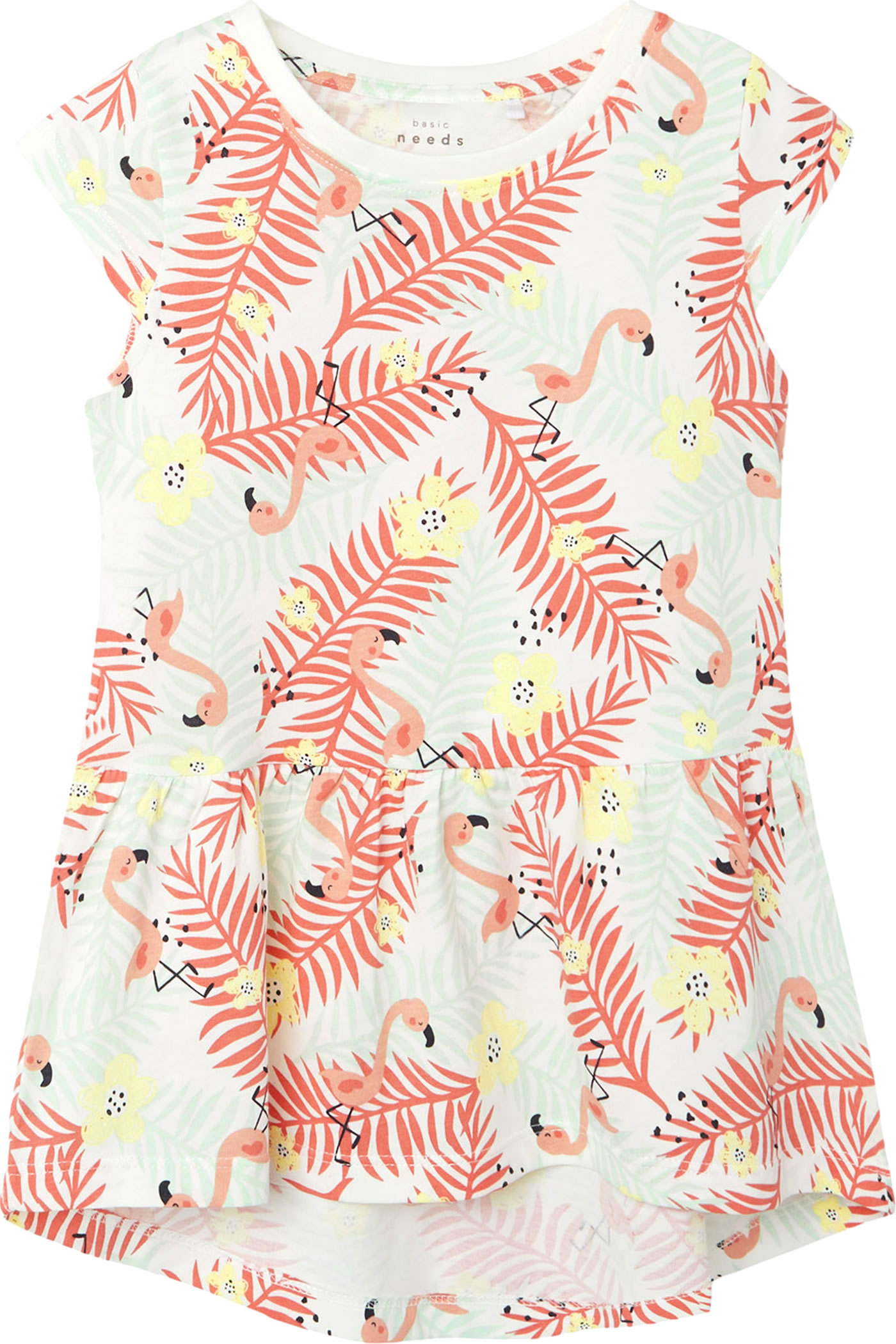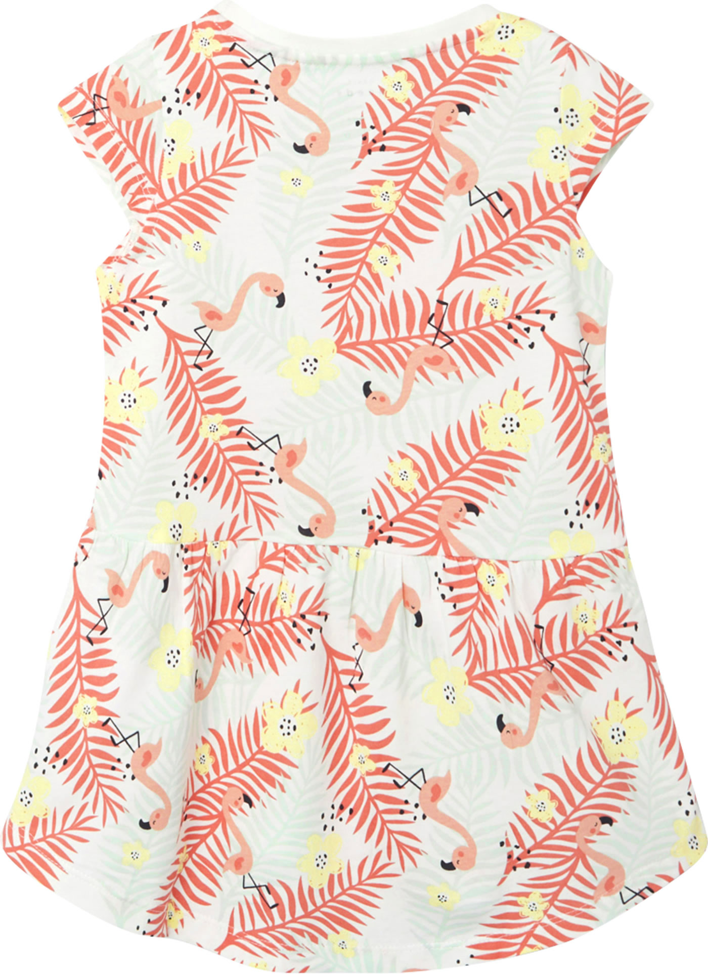 Kleid aus leichter Baumwolle mit kurzen Ärmeln von NAME IT. Der lockere Schnitt des Kleides bietet viel Bewegungsfreiheit.Das Kleid hat einen tollen Alloverdruck. Der Rockteil ist leicht gerafft und ist hinten etwas länger geschnitten.