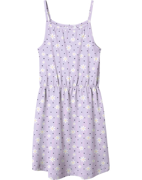 Tolles Sommerkleid mit Spaghettiträgern von NAME IT. Der lockere Schnitt des Kleides bietet viel Bewegungsfreiheit. Das Kleid hat einen tollen Alloverdruck. Ein Gummibund in der Taillie sorgt für den perfekten Sitz.