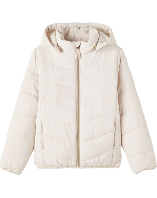 Leichte gesteppte Jacke von NAME IT für Mädchen für die Übergangszeit. Die gesteppte Optik ist ein toller Hingucker und die abknöpfbare Kapuze ein tolles Detail. Zwei Eingrifftaschen bieten Platz für Kleinigkeiten. Das leichte Gewicht der Jacke sorgt für einen hohen Tragekomfort.