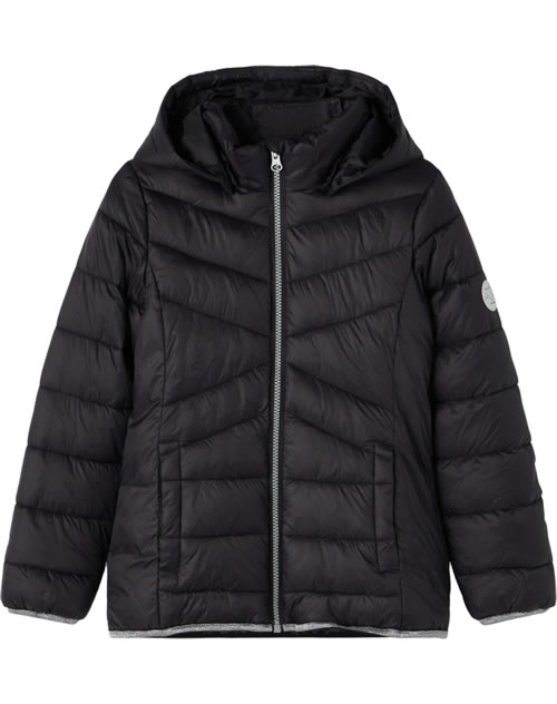 Leichte gesteppte Jacke von NAME IT für Mädchen für die Übergangszeit. Die gesteppte Optik ist ein toller Hingucker und die abknöpfbare Kapuze ein tolles Detail. Zwei Eingrifftaschen bieten Platz für Kleinigkeiten. Die Ärmelbündchen und der Saum werden von hübschen Silberstreifen geziert. Das leichte Gewicht der Jacke sorgt für einen hohen Tragekomfort.