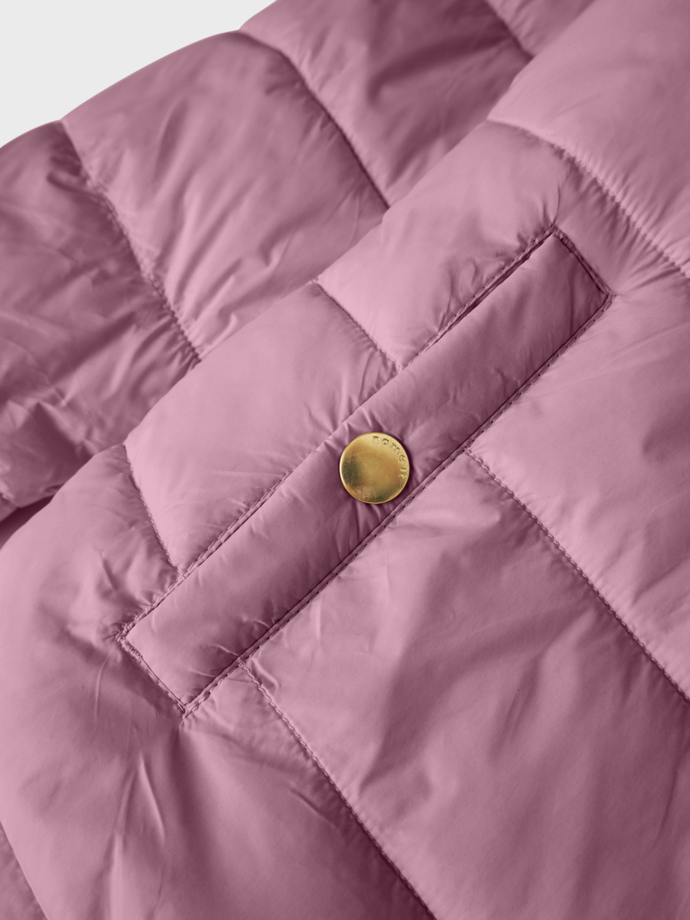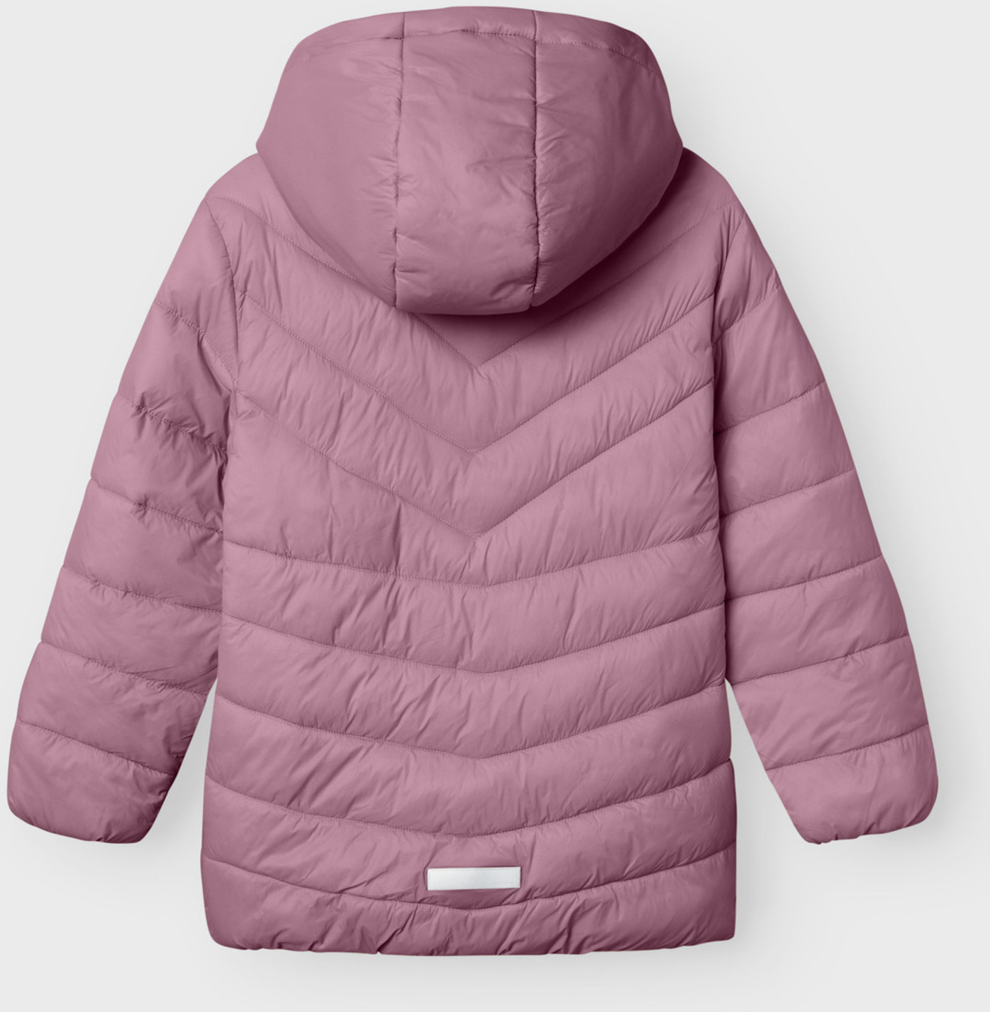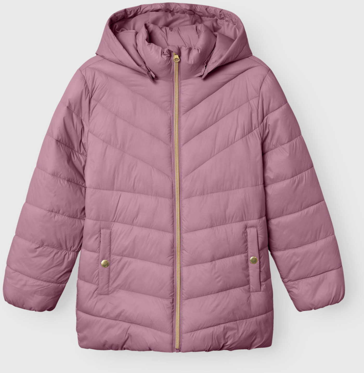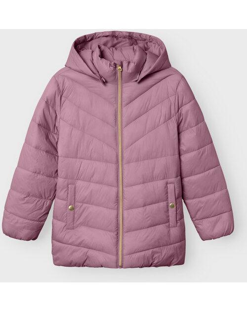 Leichte gesteppte Jacke von NAME IT für Mädchen für die Übergangszeit. Die gesteppte Optik ist ein toller Hingucker und die abknöpfbare Kapuze ein tolles Detail. Zwei Eingrifftaschen bieten Platz für Kleinigkeiten. Das leichte Gewicht der Jacke sorgt für einen hohen Tragekomfort.