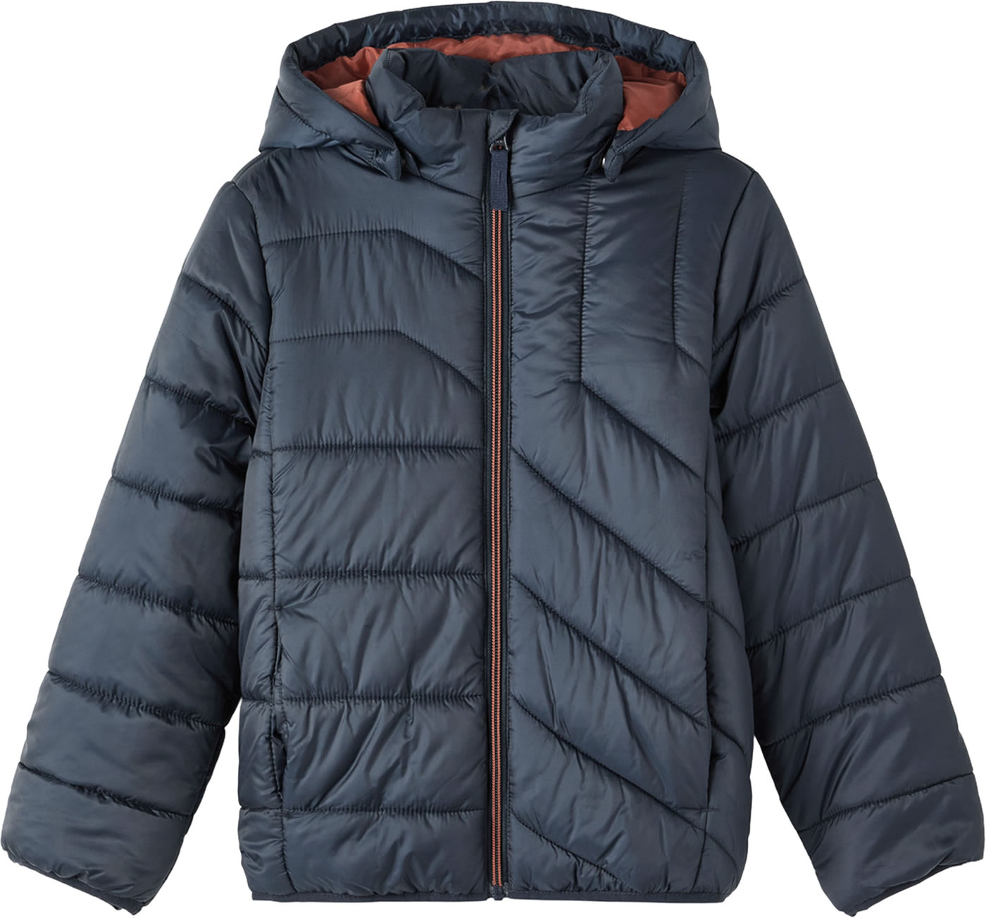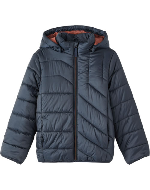 Leichte gesteppte Jacke von NAME IT für Jungen für die Übergangszeit. Die gesteppte Optik ist ein toller Hingucker und die abknöpfbare Kapuze ein tolles Detail. Zwei Eingrifftaschen bieten Platz für Kleinigkeiten. Die Ärmelbündchen und der Saum sind mit Gummibündchen versehen. Das leichte Gewicht der Jacke sorgt für einen hohen Tragekomfort.
