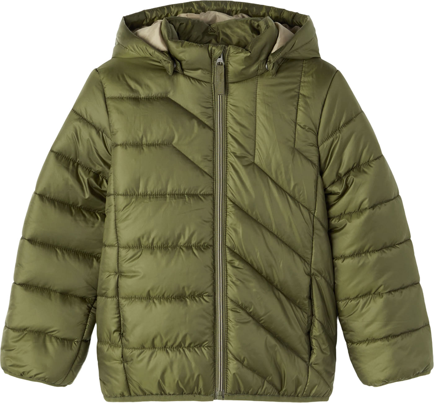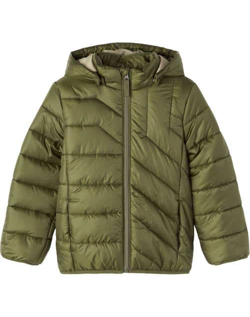 Leichte gesteppte Jacke von NAME IT für Jungen für die Übergangszeit. Die gesteppte Optik ist ein toller Hingucker und die abknöpfbare Kapuze ein tolles Detail. Zwei Eingrifftaschen bieten Platz für Kleinigkeiten. Die Ärmelbündchen und der Saum sind mit Gummibündchen versehen. Das leichte Gewicht der Jacke sorgt für einen hohen Tragekomfort.