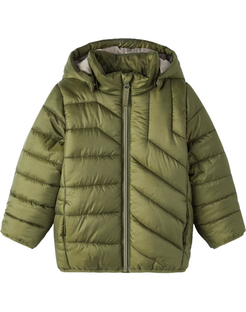Leichte gesteppte Jacke von NAME IT für Jungen für die Übergangszeit. Die gesteppte Optik ist ein toller Hingucker und die abknöpfbare Kapuze ein tolles Detail. Zwei Eingrifftaschen bieten Platz für Kleinigkeiten. Die Ärmelbündchen und der Saum sind mit Gummibündchen versehen. Das leichte Gewicht der Jacke sorgt für einen hohen Tragekomfort.