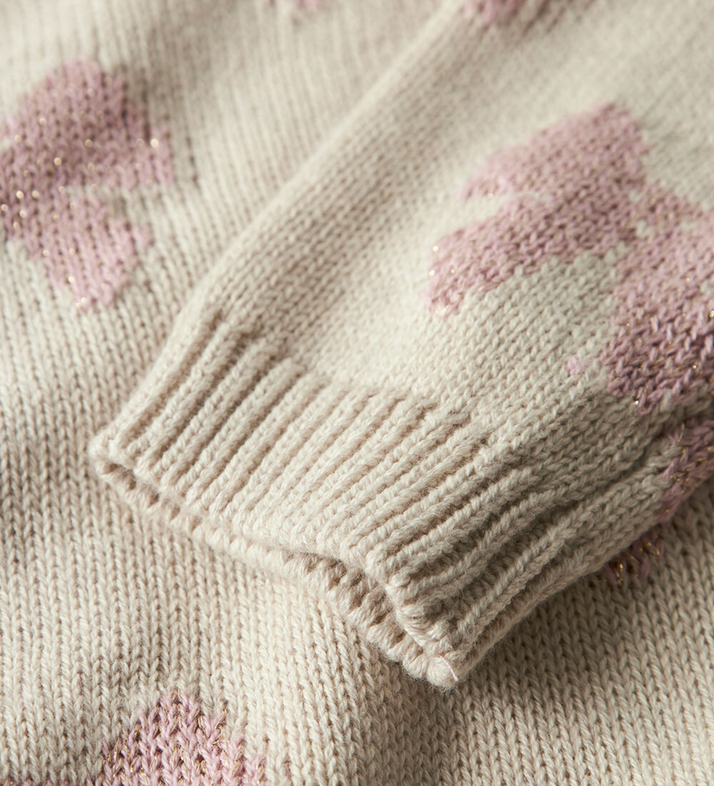 Eingestrickte Schleifen rundum sorgen für einen mädchenhaften Charme. 🎀