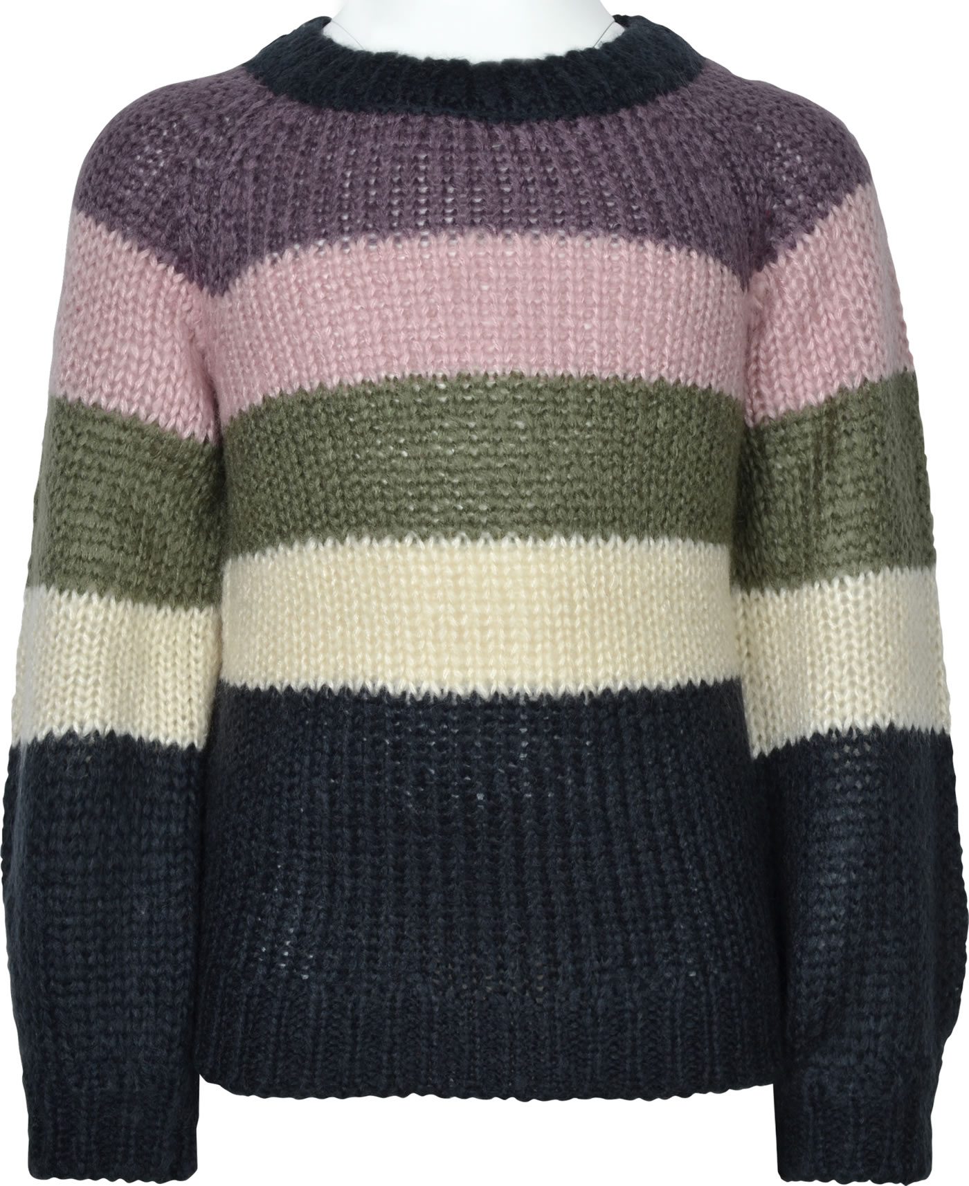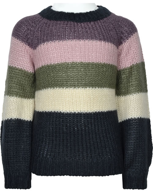 Strick-Pullover mit Rundhals-Ausschnitt für Mädchen von NAME IT. Das kuschelig-weiche Material und der lockere Schnitt bieten einen hohen Tragekomfort. Schöne Details sind die Raglan-Ärmel und das Blockstriefenmuster.